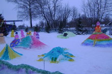 Наконец выпал первый снег и пора выяснять,как сделать снежную фигуру (скульптуру).На территории школы в преддверии Нового года совместным трудом учителей и детей были созданы красочные сказочные фигуры из снега.