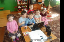 Дети смотрят презентацию на тему:"Домашние и дикие животные."