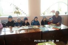 Авыл китапханәсендә Г.Тукай иҗатына багышланган кичәдә балаларның чыгышы һәм Рафия апаның әкиятләр сөйләвен тыңлау.