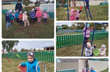 Сегодня мы с детьми второй младшей группы совершили увлекательную, занимательную и познавательную прогулку на тему «Мы по садику гуляли…», и отправились в путь на весёлом паровозике. Двигаясь вперёд по дорожкам участка, малыши хором проговаривали: «Утром небо было хмурым, и казалось все понурым. Осень очень любит плакать, дождиком на землю капать. Любит листьями шуршать, и с деревьев их срывать».