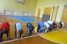 В нашей школе почти на каждом уроке физкультуры уделяется внимание к выполнению нормативов комплекса ГТО. Учащиеся начальных классов выполняют наклон вперед из положения стоя с прямыми ногами н полу. Касание пола пальцами соответствует бронзовому и серебряному уровню, а достать пол ладонями золотому уровню. Средиучащихся 2 класса Казаков Тимур выполняет это упражнение на золотой уровень, а все остальные на серебро.