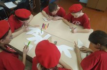 В рамках патриотической акции "Напиши письмо солдату" юнармейцы отряда имени полного кавалера славы Т.Г. Назмутдинова писали рукописные письма с поздравлениями военнослужащим российской армии в виде солдатских треугольников.