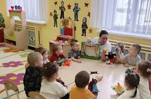 “Тиенкәй” балалар бакчасындагы тәрбиячебез Насретдинова Диләрә балаларга рус халык әкияте мотивлары буенча өстәл театрын күрсәтте.Ул әкиятне иллюстрацияләр һәм декорациялар белән кызыклы һәм тәрбияви итеп алып барды.Ахырдан геройларның кылган эшләренә,кайбер әхлакый сыйфатларына(начар,усал,кыю,хәйләкәр) бәя бирә белергә өйрәнделәр.
