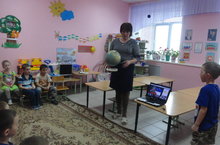 Юрий Гагарин портреты һәм аның тормышын чагылдыручы слайдлар, компьютер, һәм космонавтларга багышланган китаплар белән таныштыру.