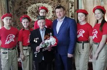 Медаль ветерану 16.03.2020Ветерану войны Хасану Зиганшину глава района Альберт Рахматуллин вручил юбилейную медаль и подарок по случаю 75-летия Великой Победы. Наши юнармейцы участвовали в этой мероприятии и подарили ветерану цветы.