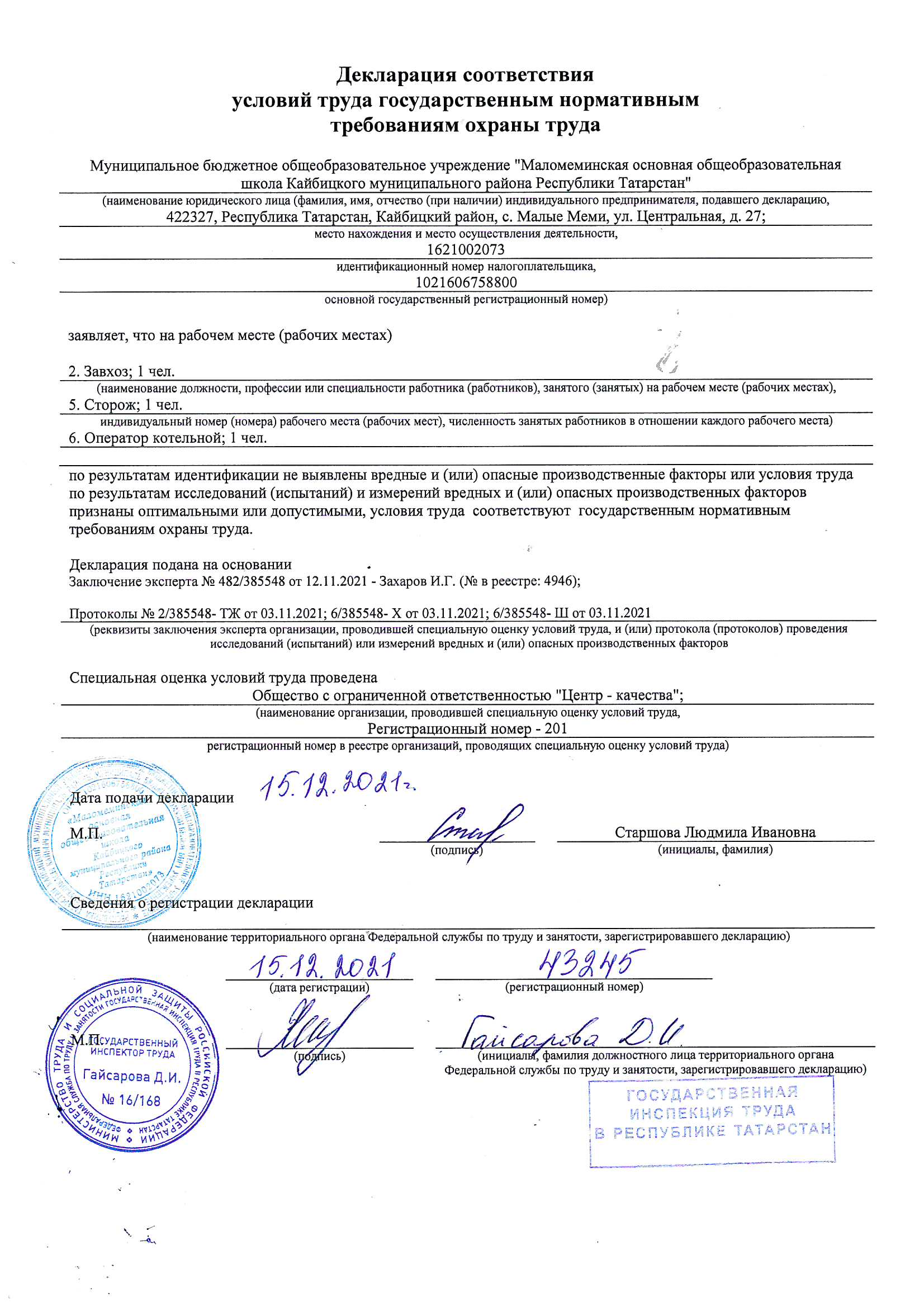 МБОУ "Маломеминская основная общеобразовательная школа Кайбицкого муниципального района Республики Татарстан имени Героя Российской Федерации Владимира Николаевича Козина"" Татарстан Республикасы Кайбыч муниципаль районының Россия Федерациясе Герое Владимир Николаевич Козин исемендәге Кече Мәми төп гомуми белем бирү мәктәбе" МБМУ