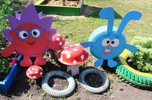 На детской площадке садика вырос Город смешариков, который пополняется новыми смешариками.