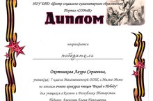В воскресенье, 17 мая, учащиеся 7 класса Шихова Мария, Охотникова Лаура и учащиеся 2 класса Хайрутдинова Аниса, Жилина Анастасия со своими руководителями Алексеевой Еленой Николаевной и Самарской Татьяной Ивановной выехали в город Казань НОУ ДПО "Центр социально-гуманитарного образования", Портал "СОМиК", где участвовали в очном конкурсе чтецов "Вклад в Победу" и заняли 1,2 и 3 места. Молодцы!!! Желаем дальнейших успехов!