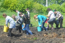 Сегодня мы посадили картофель. Сажать в холодную землю картофель бессмысленно, быстрее он от этого не вырастет. Скорее наоборот, может загнить, случись заморозки или затяжная весна. Самый ранний срок посадки считается, когда береза начинает зеленеть. Значит земля прогрелась до 8 градусов тепла. Однако я спешить не советую. Если терпит - подождите недельку-другую. Поверьте, более ранней картошки от посадки в грязь вы все равно не получите. Земля должна быть рассыпчатой, но еще в меру влажной от талых вод. По традиции в нашей деревне картошку принято сажать во время цветения черемухи. Мы эту традицию не нарушаем. Думаем именно по этому у нас всегда хороший урожай картофеля. Наказы старых людей нужно соблюдать. Того желаем и всем други школам.