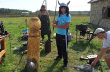 Ребята заинтересовались средневековыми доспехами, не удержались и примерили их на себе. Правда кольчугу не стали надевать - слишком тяжёлая.