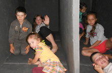 Хорошо живется детям в лагере, каждый день новые развлечения. Даже домики из мат построили.