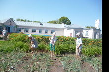 В огороде вовсю кипит работа. Учашиеся шестого класса пропалывают и прореживают лук. ожидаем неплохой урожай.