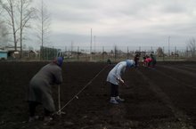 Земля с каждым днем прогревается все лучше, и, и поэтому в школе начали посев свеклы и моркови, днем раньше посеяли капусту на рассаду.