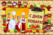 С днем повара! 20.10.2018 Мы хотим поздравить дружно Вас сегодня, повара, Пожелать рецептов вкусных, Позитива и добра! Чтоб в работе вдохновенье Никогда не покидало, И во всем ждало везенье, Солнце путь ваш освещало!
