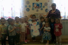 Дети в младшей группе с воспитателем Новиковой Т.А. сделали коллективную работу,деда мороза.
