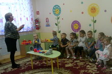 После длительных каникул начались первые занятия.В младшей группе кукла Алсу знакомится с воспитанниками и дети ей рассказывают,как они провели каникулы.