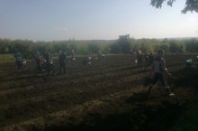 Сегодня, после уроков, мы всей школой вышли на уборку картофеля.