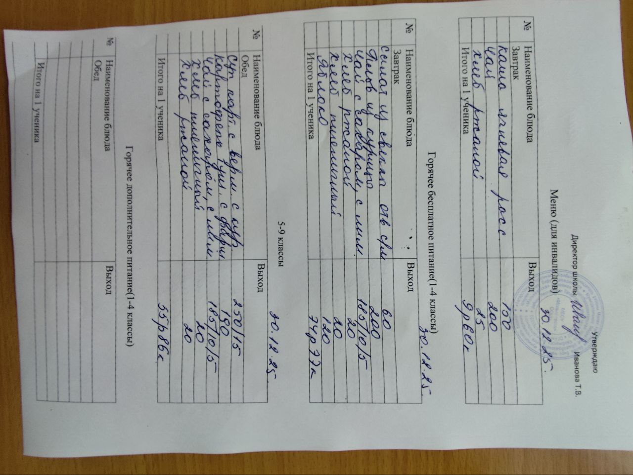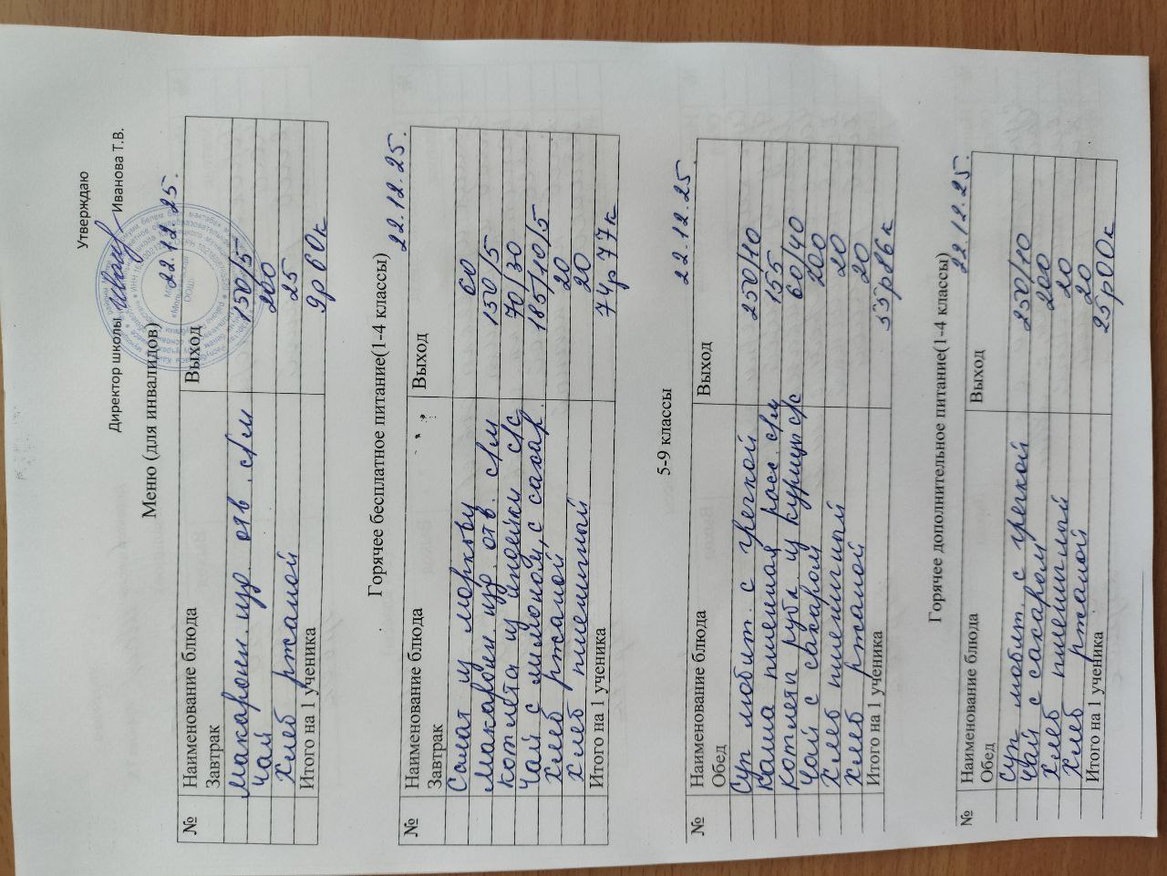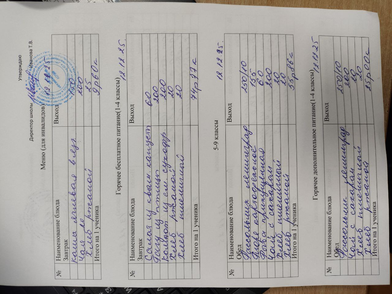 - Меню в столовых общеобразовательных школ РТ с 20 по 25 ноября , 04 по 09 декабря , 18 по 23 декабря 2023г.