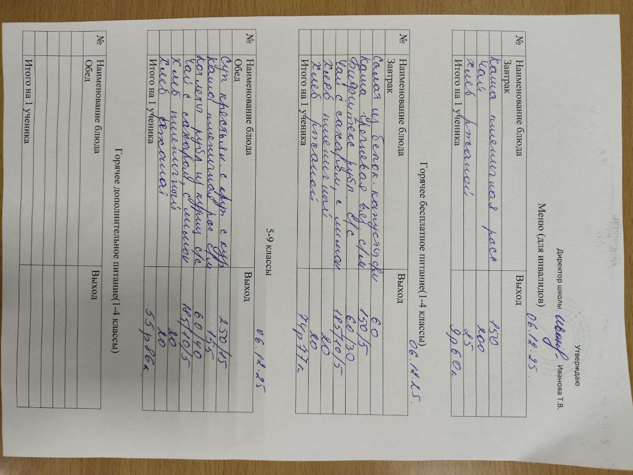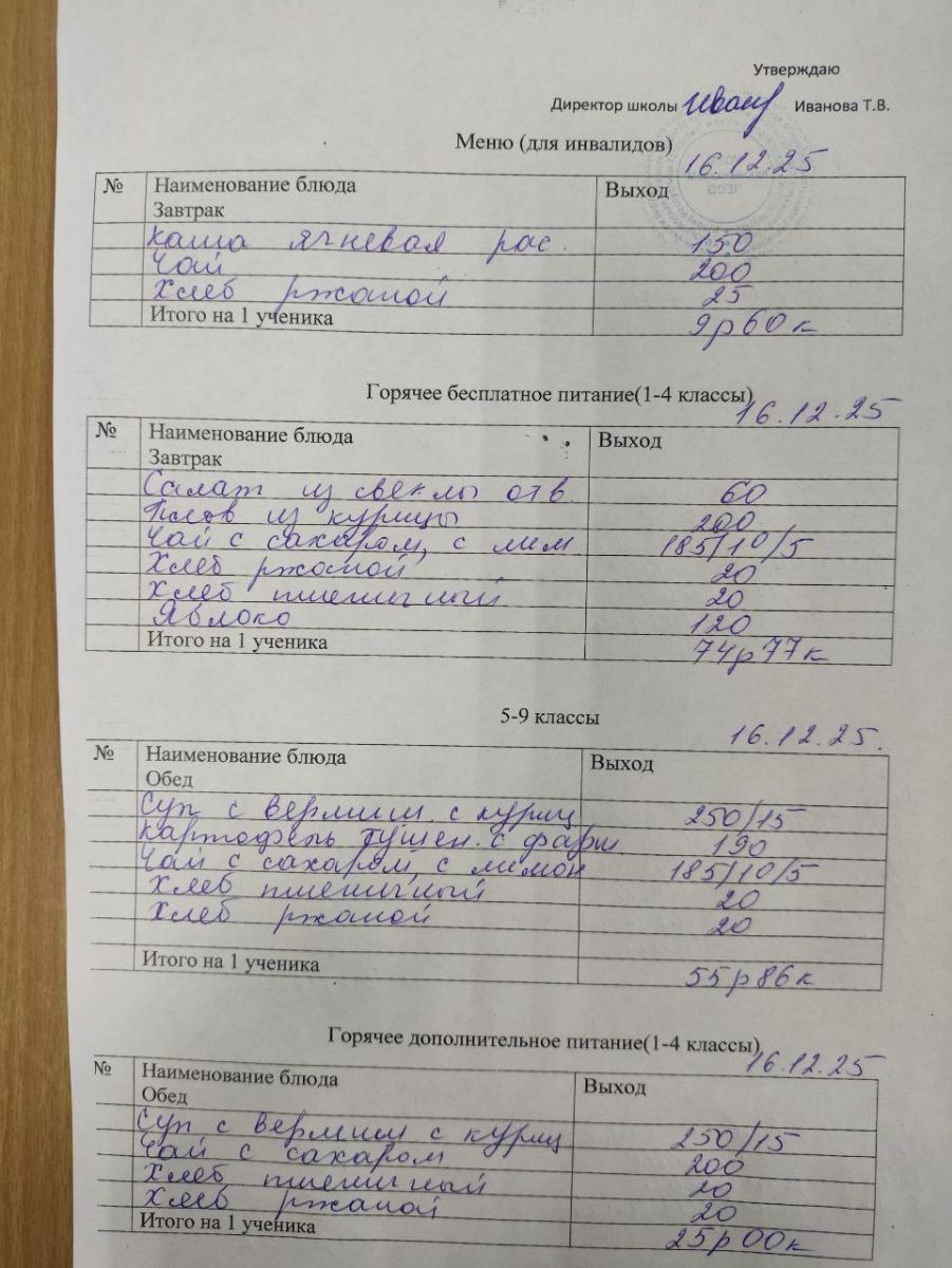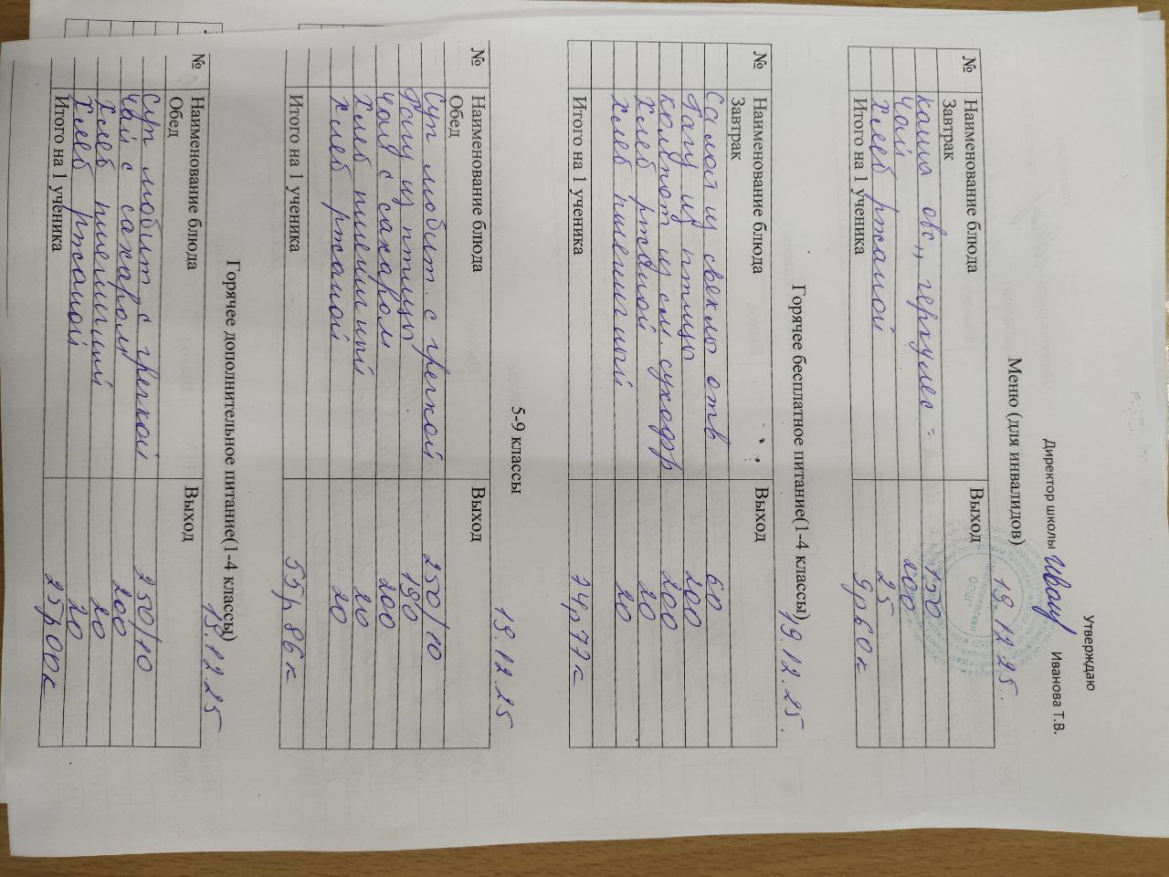 - Меню в столовых общеобразовательных школ РТ с 20 по 25 ноября , 04 по 09 декабря , 18 по 23 декабря 2023г.