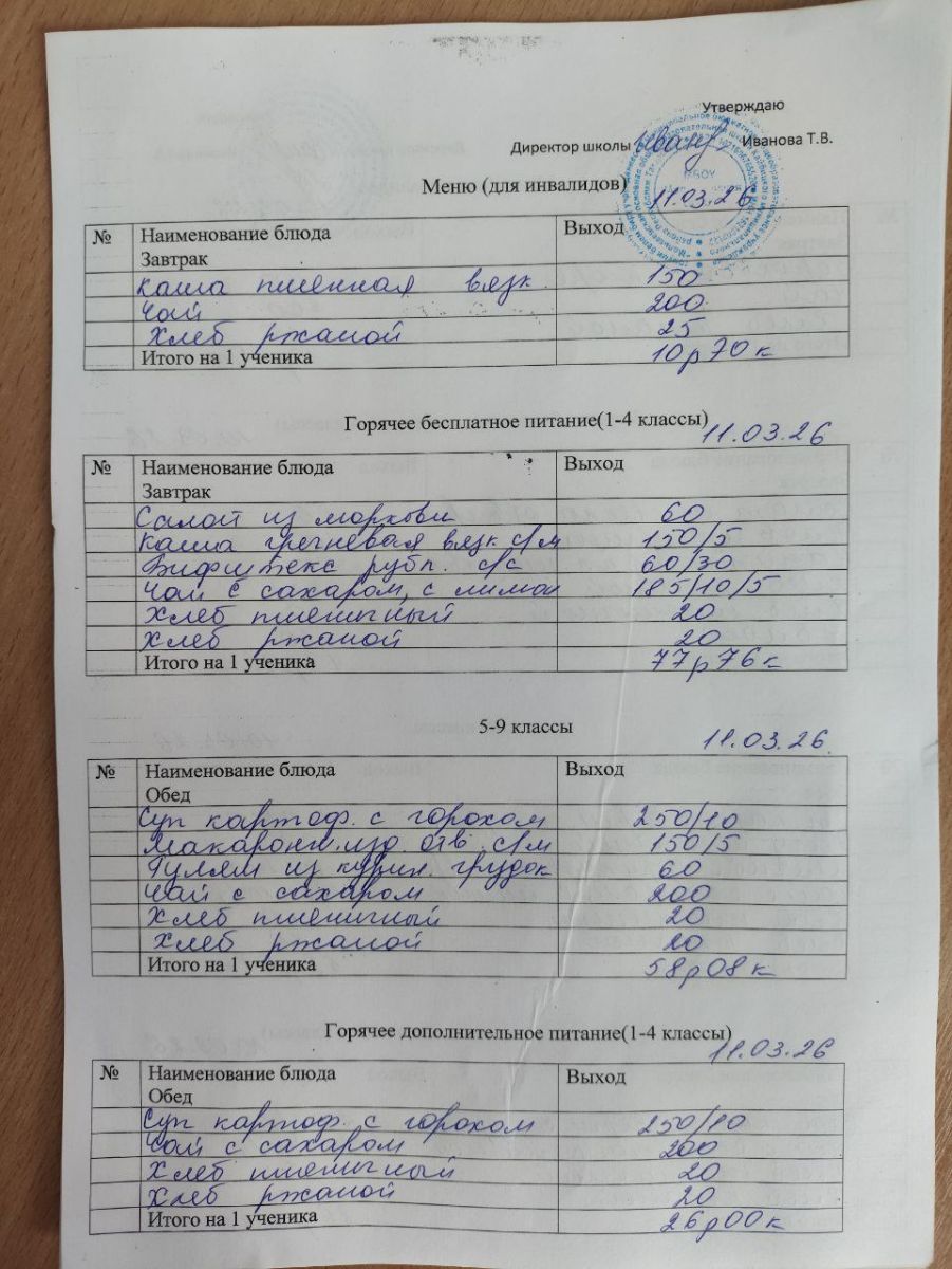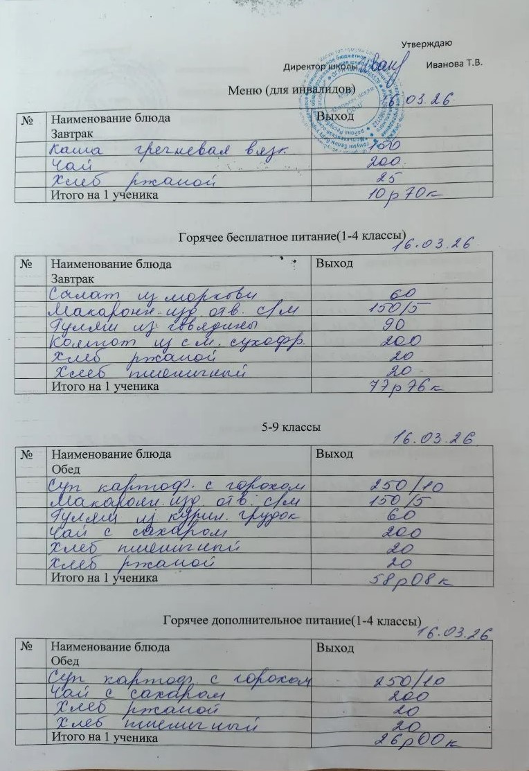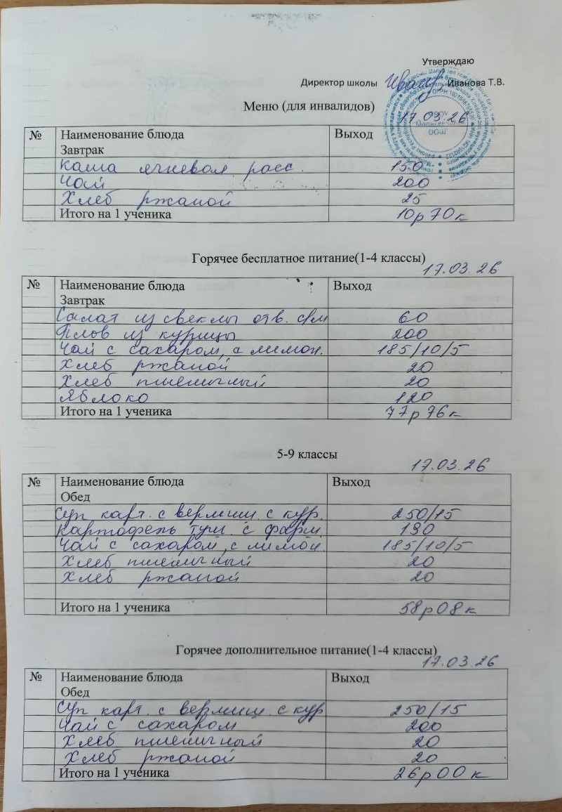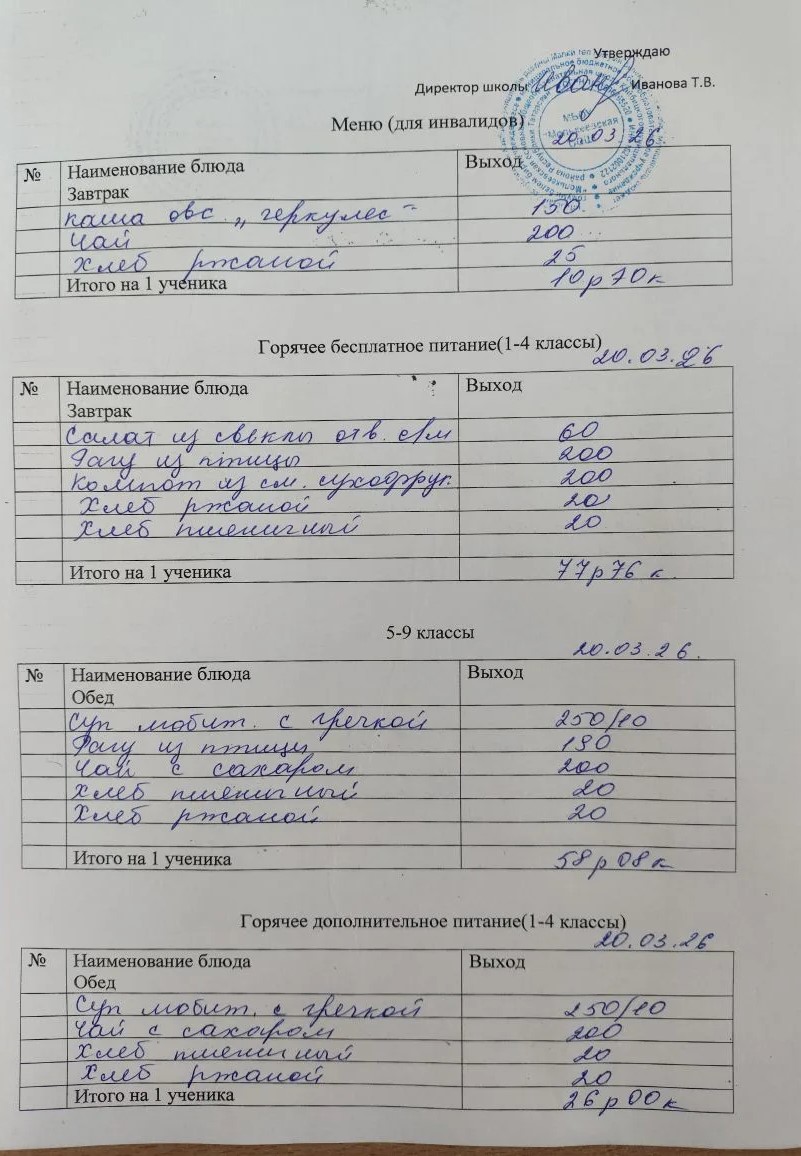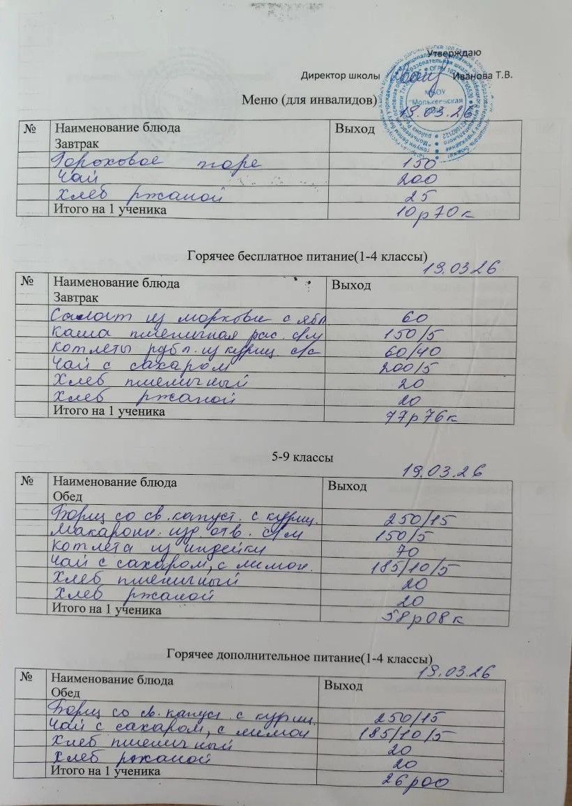 Меню март 2026г.