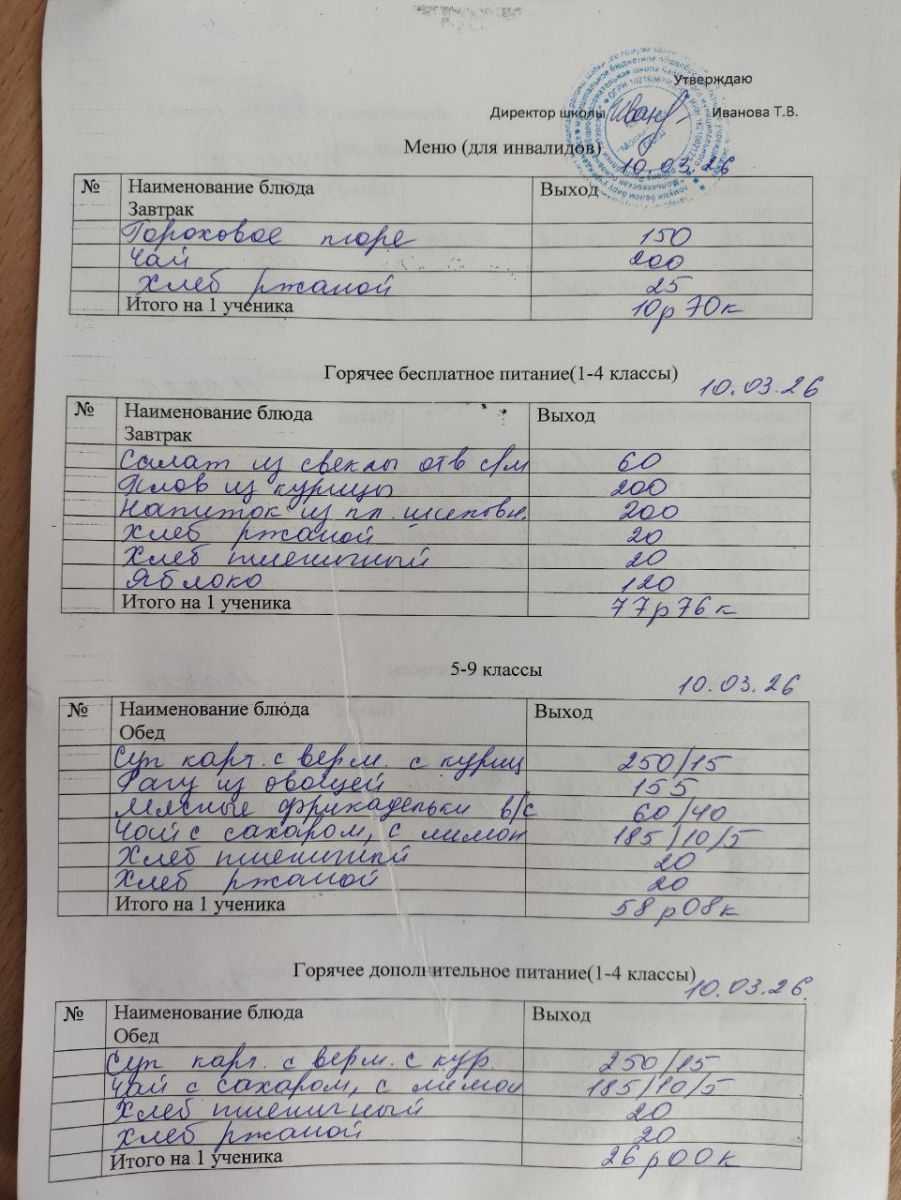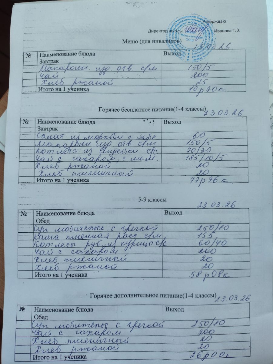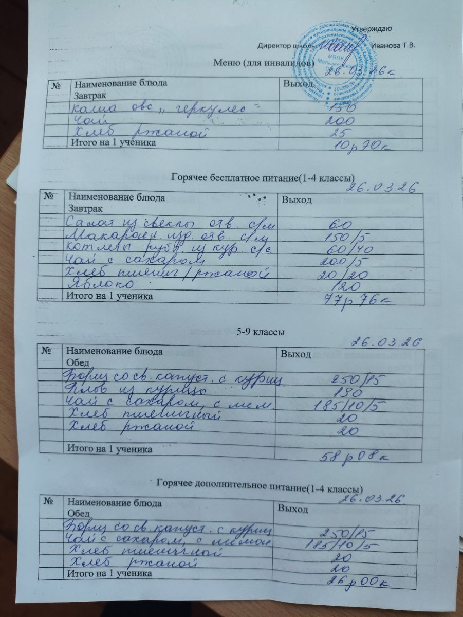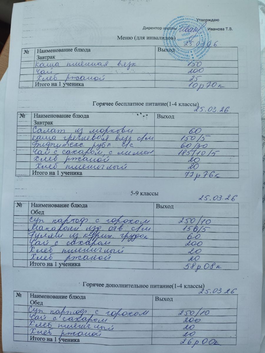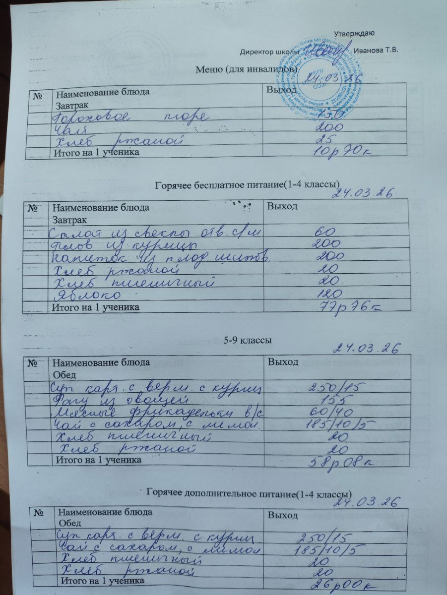 Меню март 2026г.