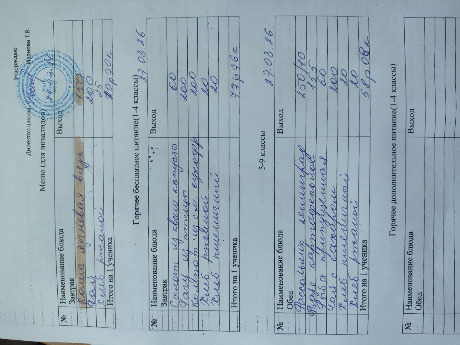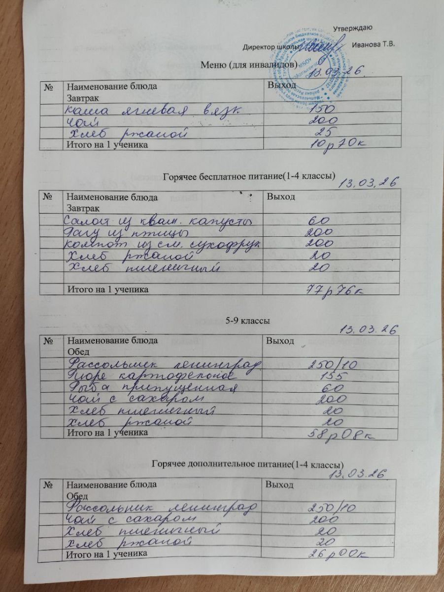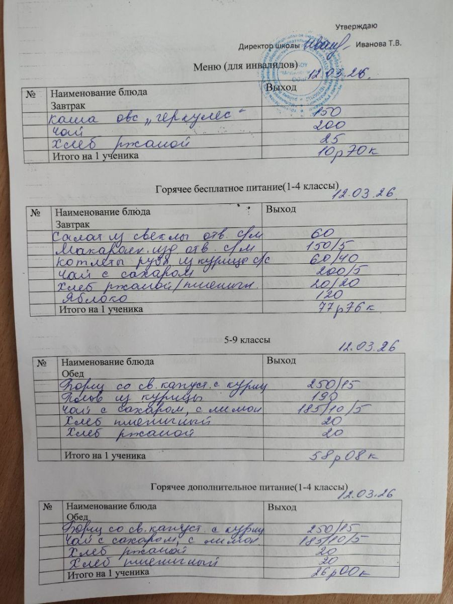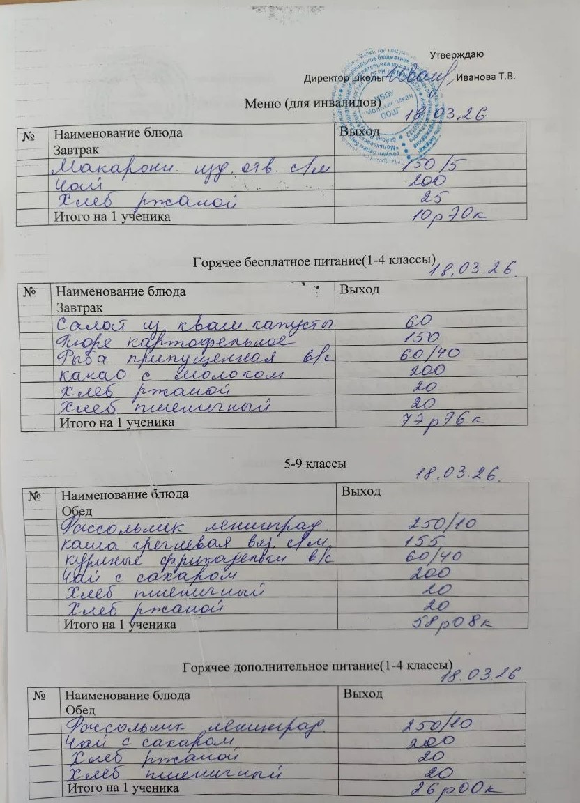 Меню март 2026г.