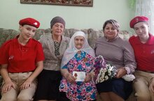 Яшь армиячеләр "Дети войны" медале белән бүләкләнүчеләр 92 яшьлек Сәкинә апа Гобәева, быел 85 яшен тутырган Рәшидә апа Хәсәновада булдылар.