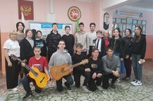 Мастер-класс по ПК "Гитара для всех" для учащихся Хозесановской СОШ провели преподаватель отделения "Вокал" Никонова Г. Н. и преподаватель отделения "Фортепиано" Гирфанова Р. Р., также учащиеся отделения "Вокал" Ахметова Ильвина, Макаров Никита.