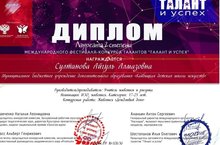 Преподаватель МБУ ДО "Кайбицкая детская школа искусств" отделения "ИЗО", Султанова Айгуль Алмазовна сатала Лауреатом II степени Международного фестиваля -конкурса талантов "Талант и Успех" .