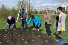 Коллектив школы принял активное участие в посадке цветов на территории школы.