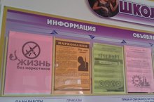 В фойе нашей школы оформлен стенд "Жизнь без наркотиков!"с целью проведения республиканской антинаркотической акции (с 26 мая по 26 июня 2018г.), приуроченной к Международному дню борьбы со злоупотреблением наркотическими средствами и их незаконным оборотом.