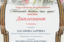 ученица 7 класса Хасанова Заррина -дипломант Международного интернет-конкурса