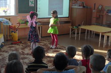 Без һәр көнебезне күңелле итеп үткәрәбез. Барыбыз бергә әкият геройларын кунакка чакырдык. Үзебез "Шалкан", "Табикмәк" әкиятләрен сәхнәләштердек. Бик күңелле булды.