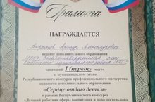 Сегодня прошел муниципальные этапы Республиканского конкурса профессионального мастерства педагогов дополнительного образования "Сердце отдаю детям". От нашей школы участвовал педагог дополнительного образования, руководитель объединения "Юные конструкторы " – Акрымов А.А. По итогам конкурса он набрал наибольшее количество баллов и занял 1 место. Поздравляем!