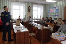 В этот же день работники МЧС провели с учителями беседу на тему "Личная и пожарная безопасность". Затем проинструктировали учителей о мерах пожарной безопасности.