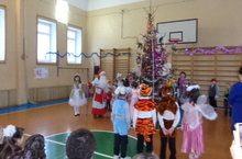 В этот же день (29 декабря) для учащихся среднего звена состоялось новогоднее представление "В гостях у Простоквашино". Учащиеся исполняли замечательные танцевальные, песенные, игровые номера. Праздник прошел интересно и весело, все участники представления весело танцевали около елки.