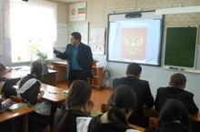 В средних классах (5-7) урок провела Владимирова А.Н. Все было закреплено демонстративно презентацией. Учащиеся узнали о гербах, гимнах и флагах России и Татарстана.