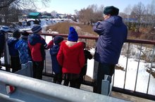 Затем он с учениками младших классов совершил прогулку к водоему, на месте объясняя детям опасность, которую представляет собой половодье.