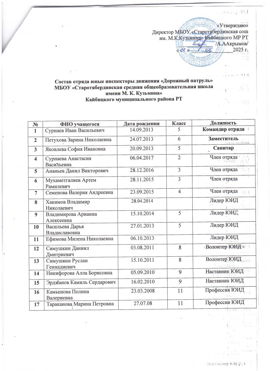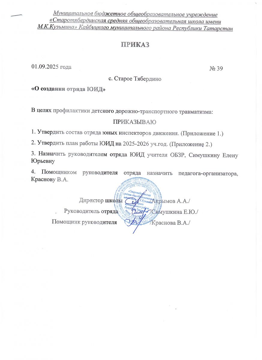 Муниципальное бюджетное общеобразовательное учреждение «Старотябердинская средняя общеобразовательная школа имени М.К.Кузьмина» Кайбицкого муниципального района Республики Татарстан
