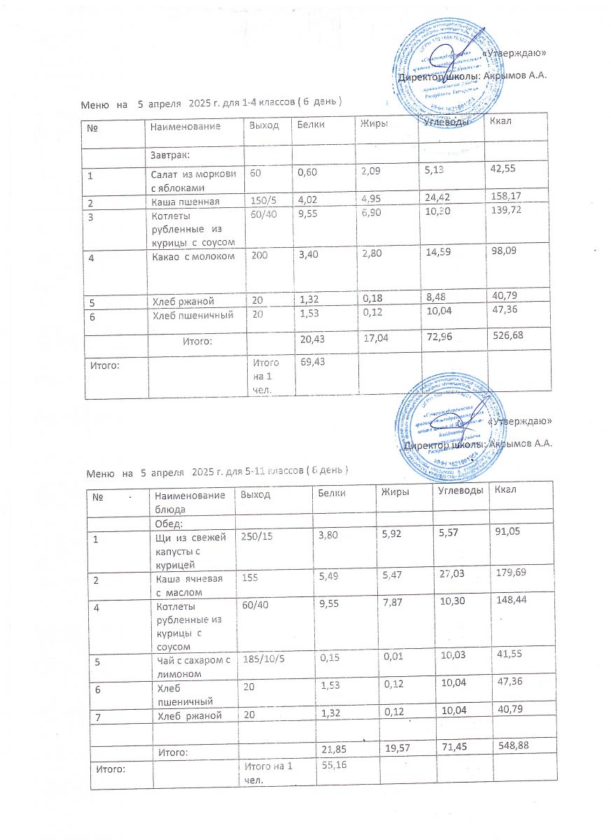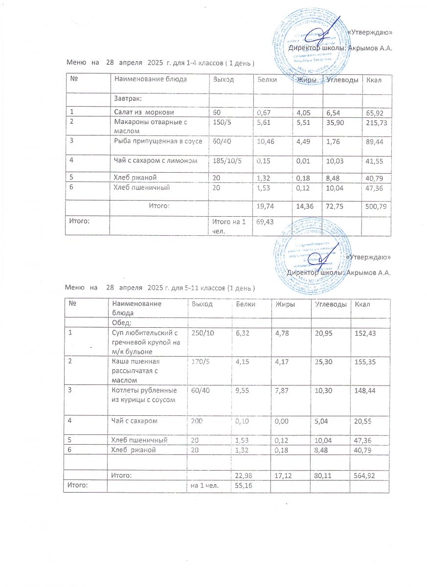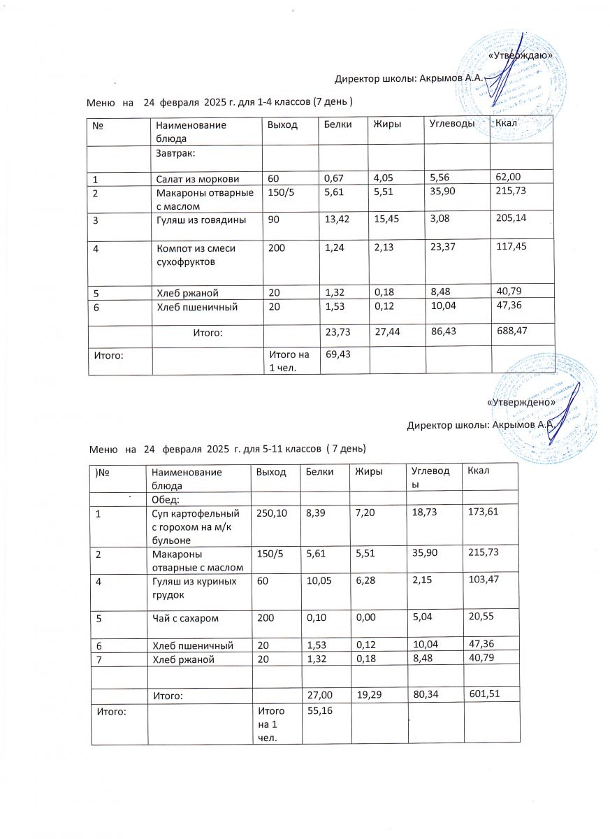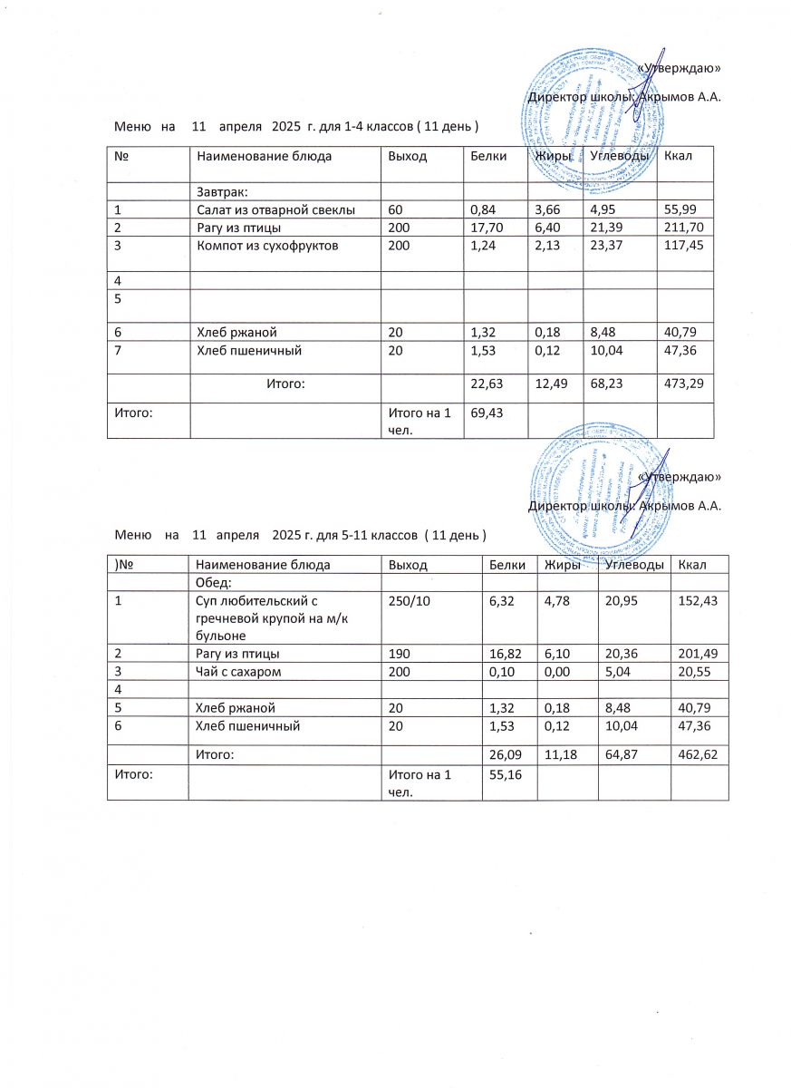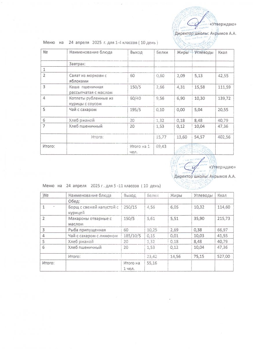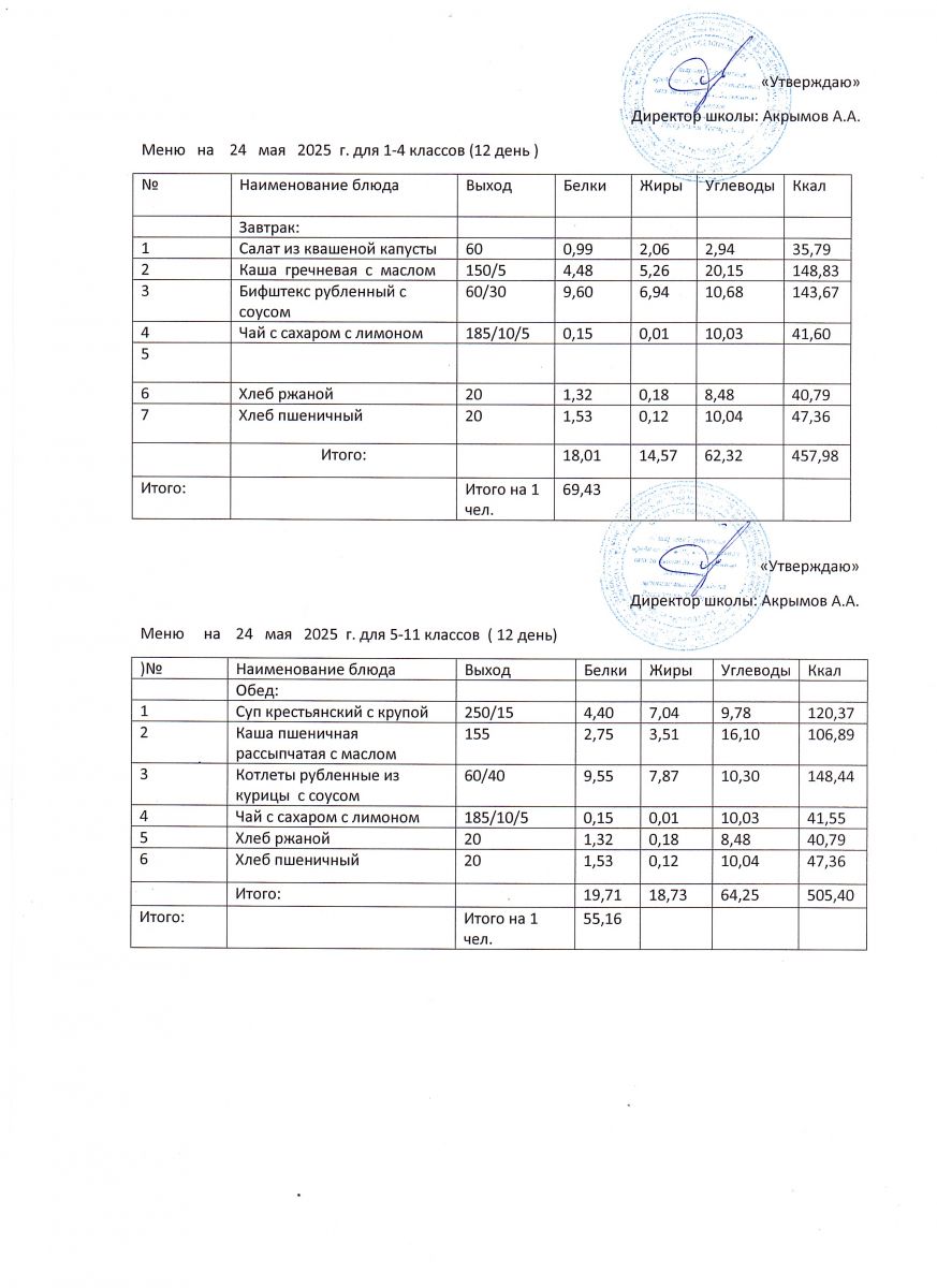 Ежедневное меню учащихся 1-4, 5-11 классов на 2024-2025 уч.год