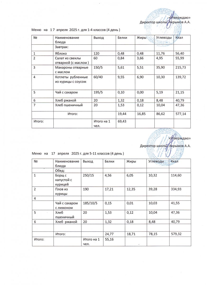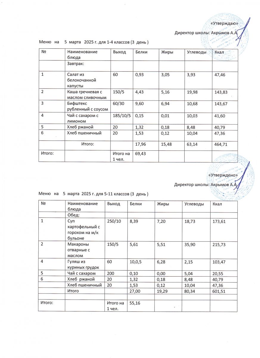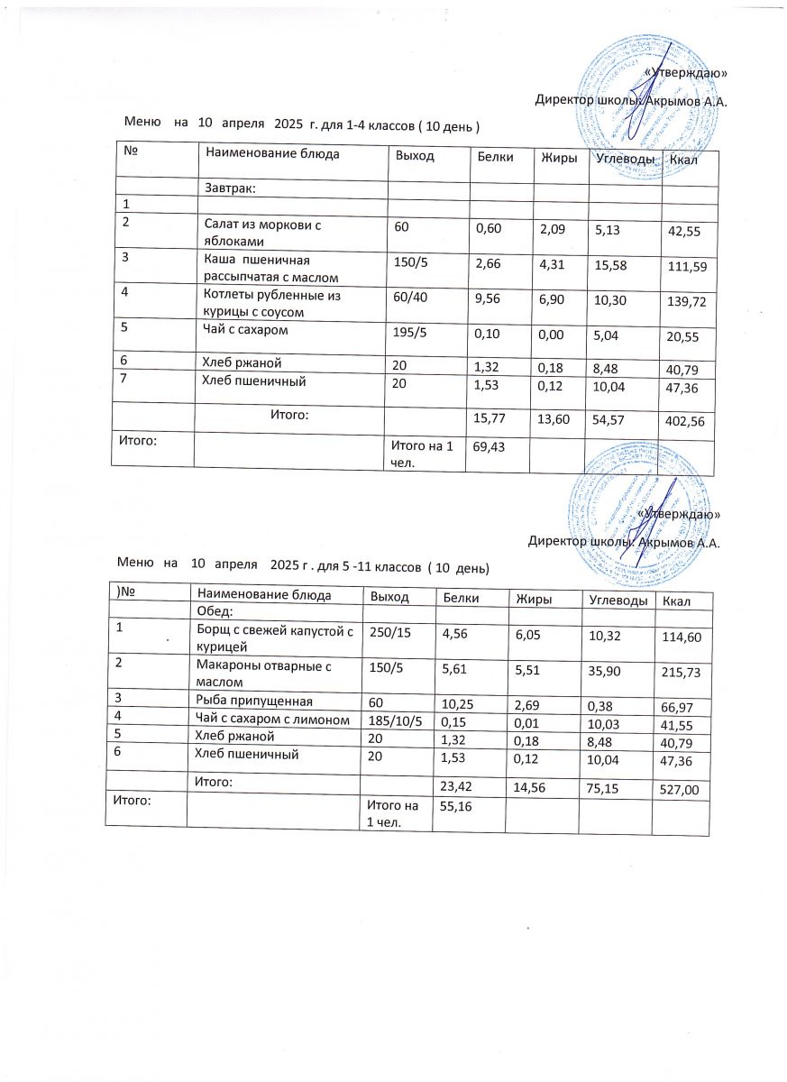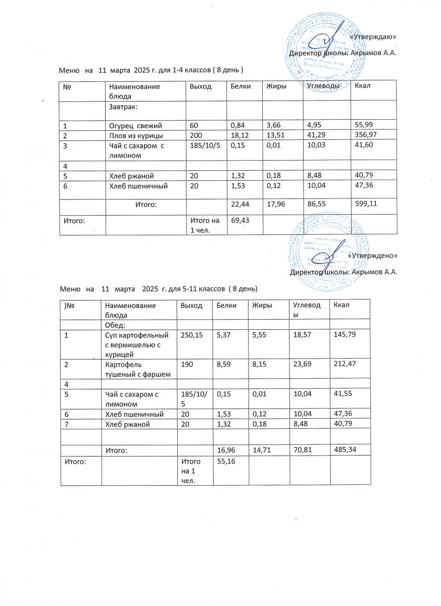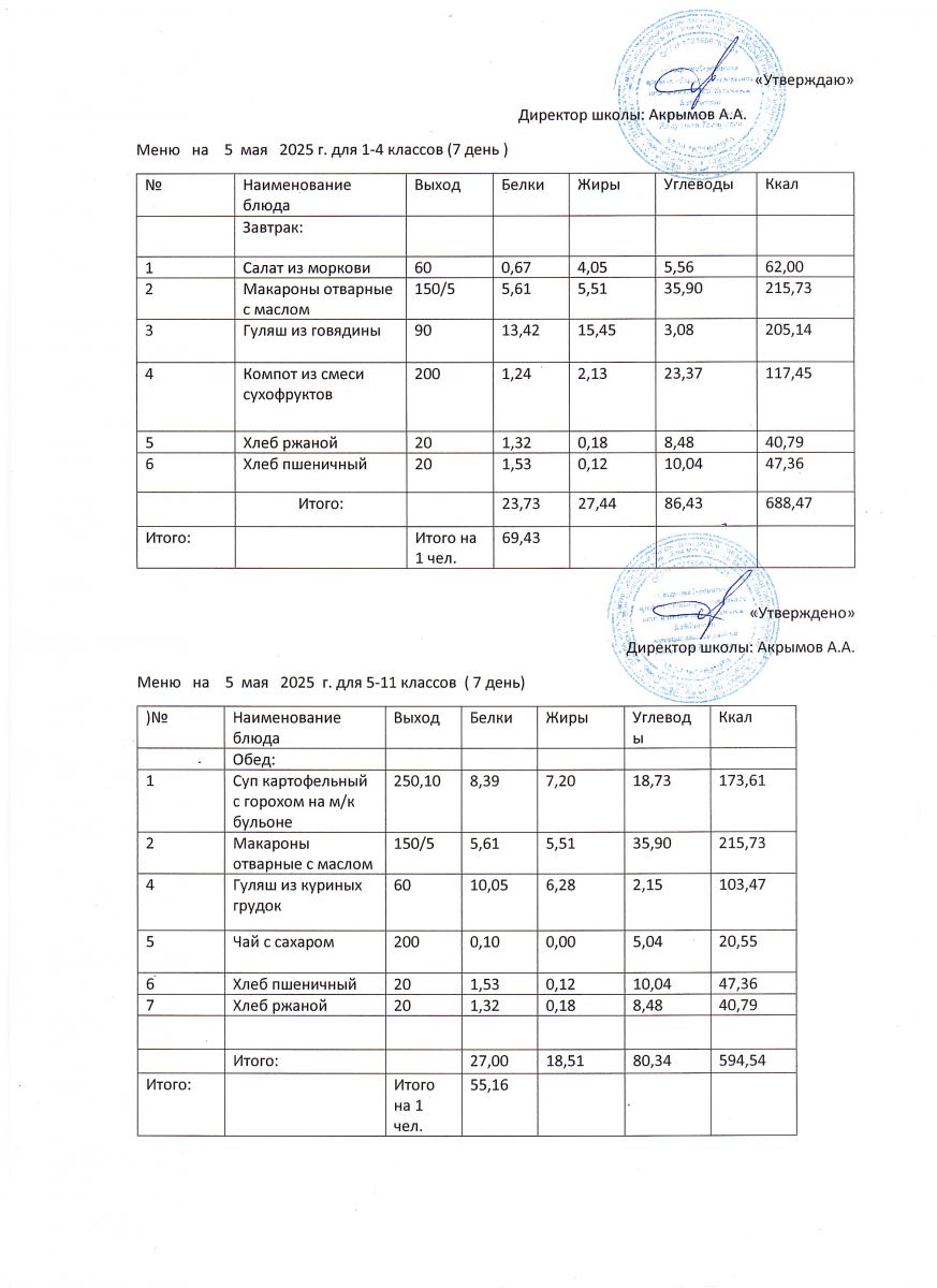 Ежедневное меню учащихся 1-4, 5-11 классов на 2024-2025 уч.год