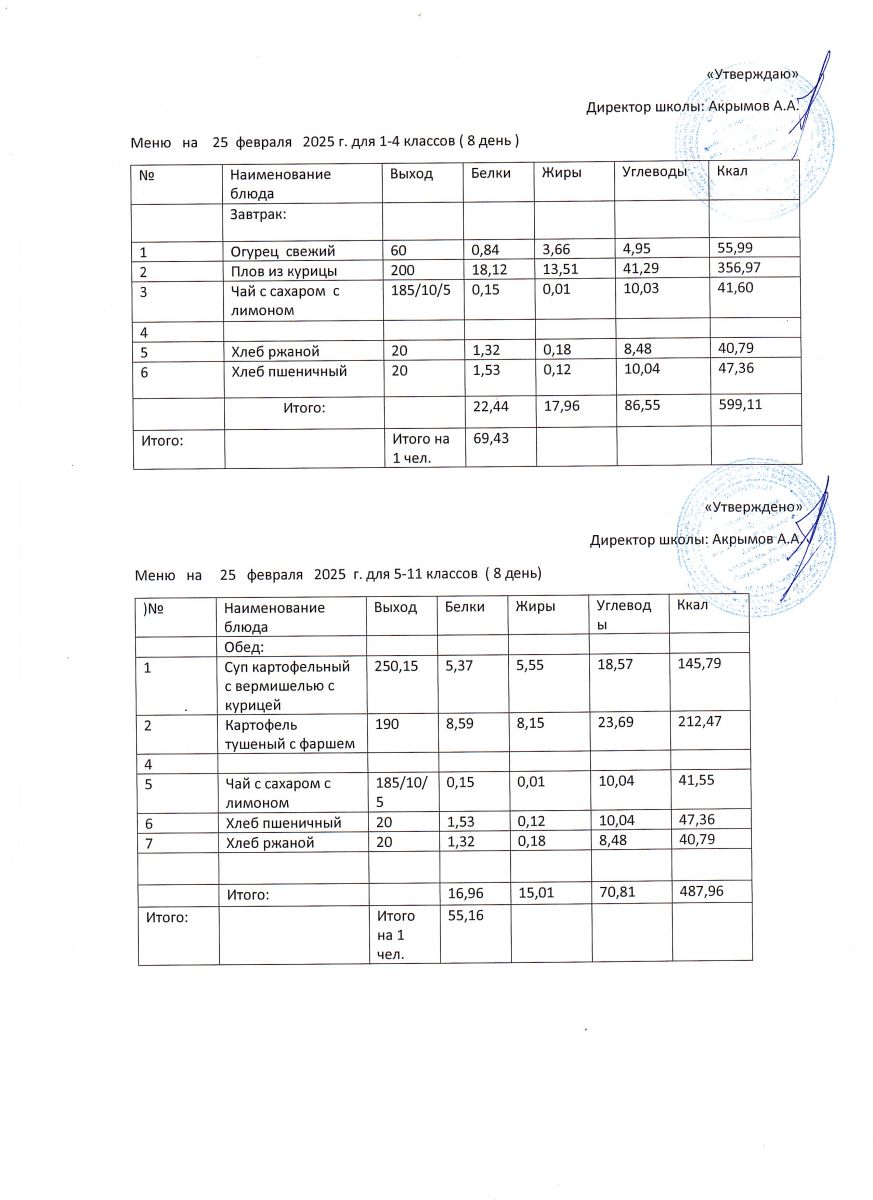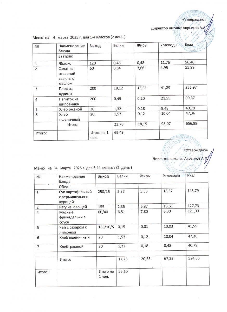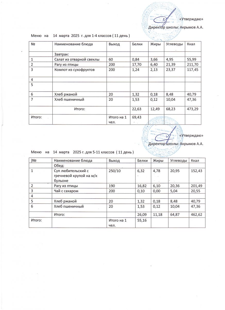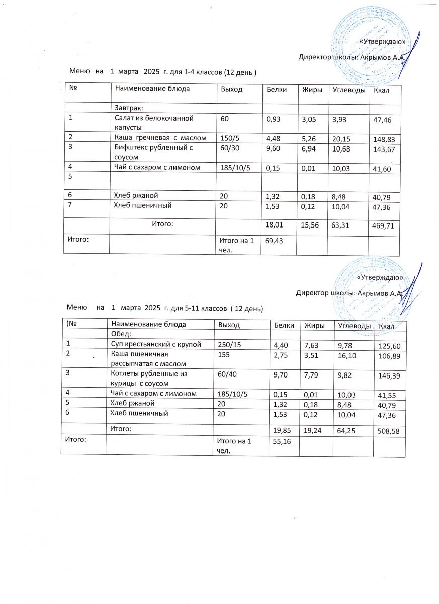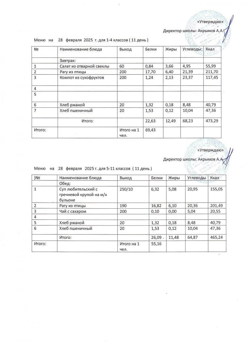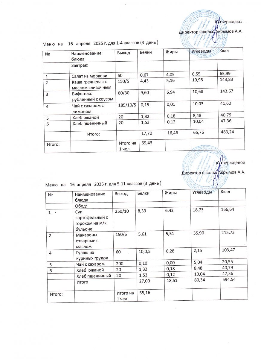 Ежедневное меню учащихся 1-4, 5-11 классов на 2024-2025 уч.год
