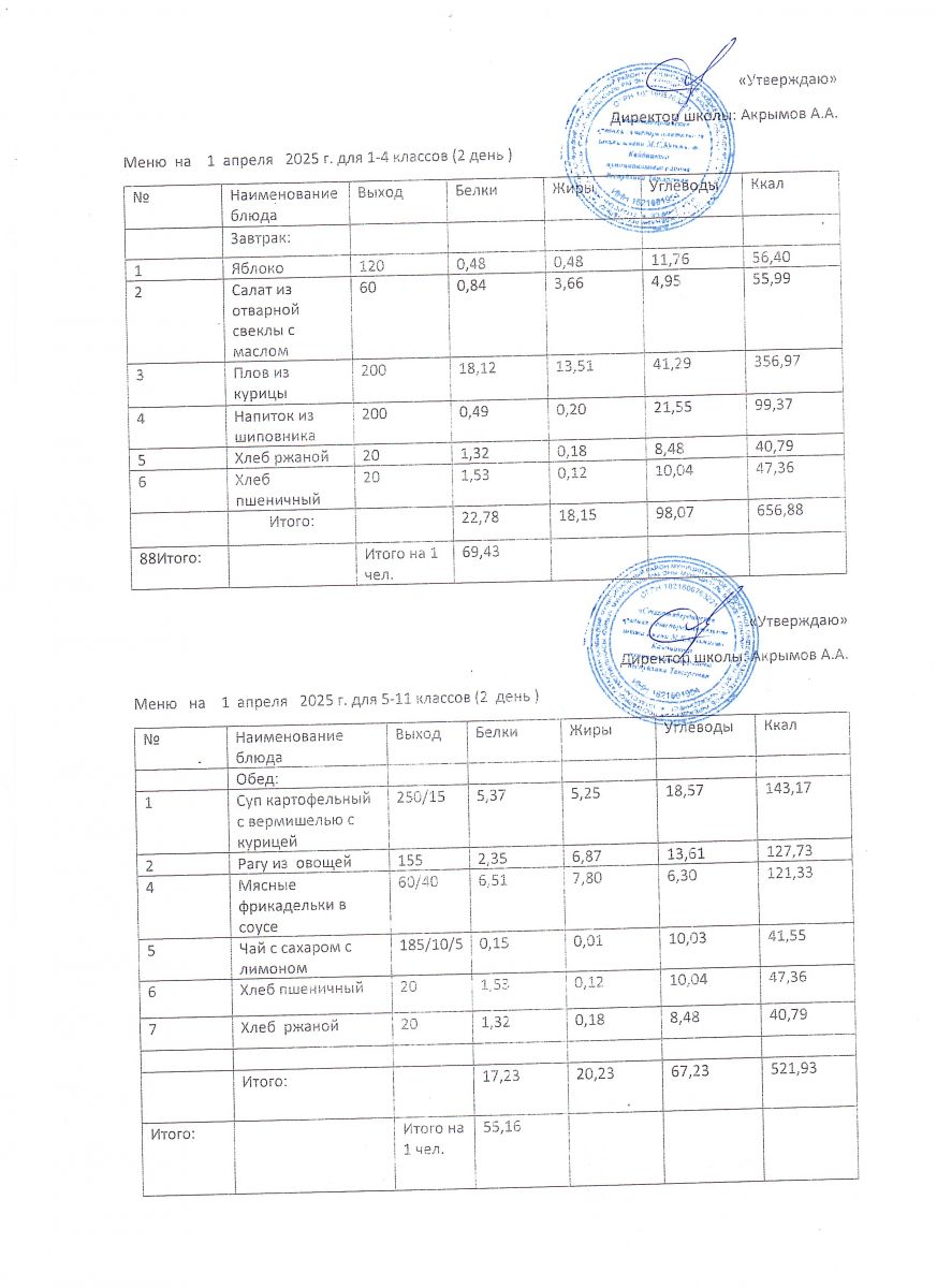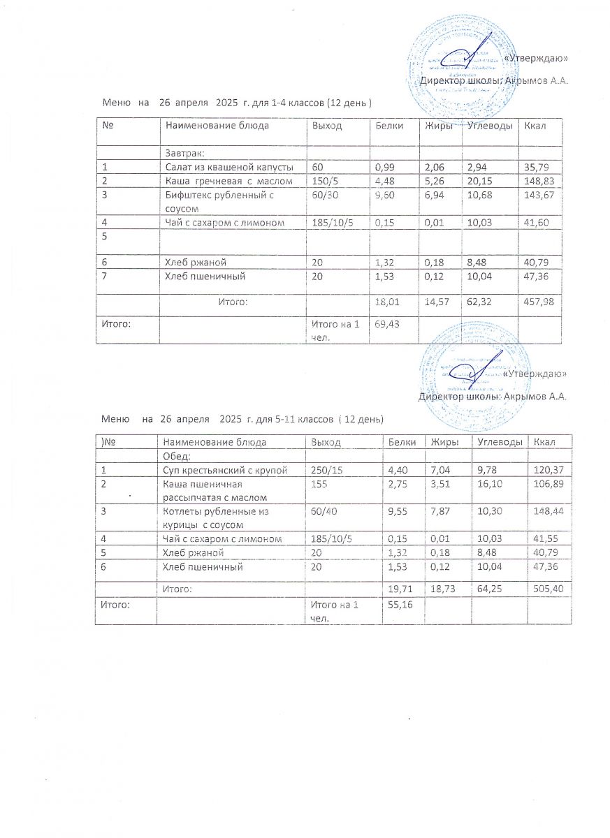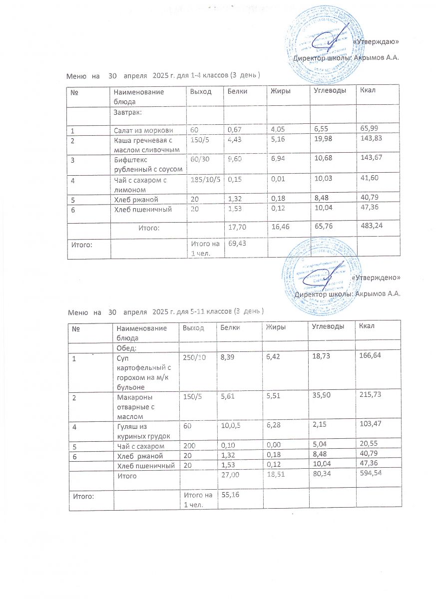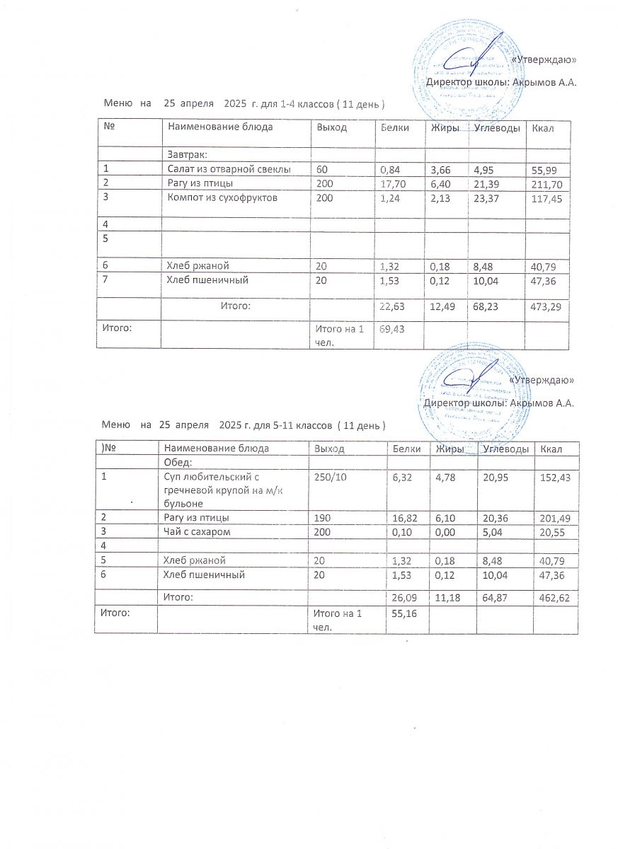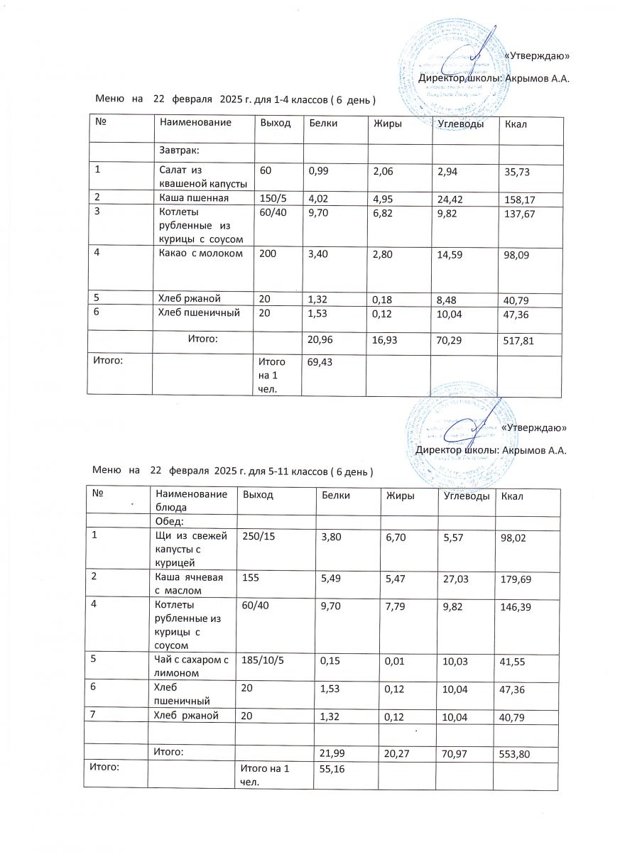 Ежедневное меню учащихся 1-4, 5-11 классов на 2024-2025 уч.год