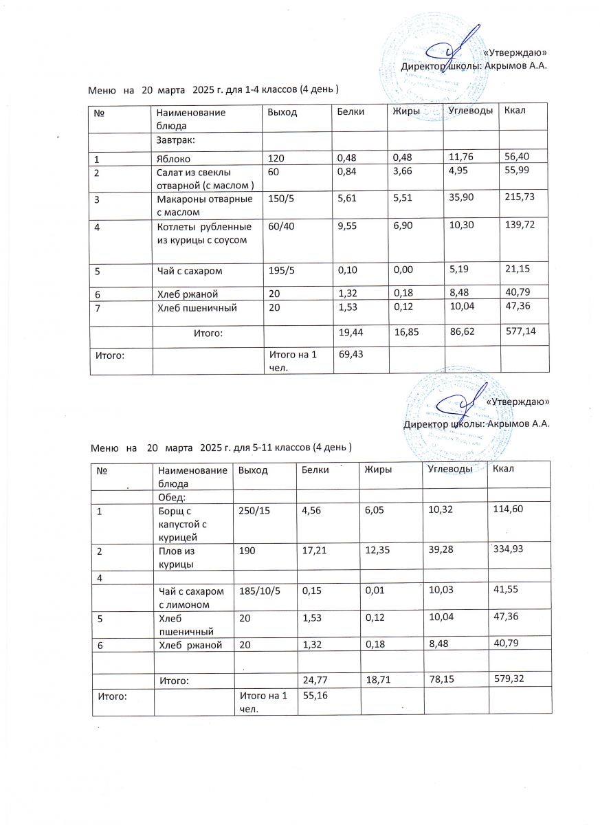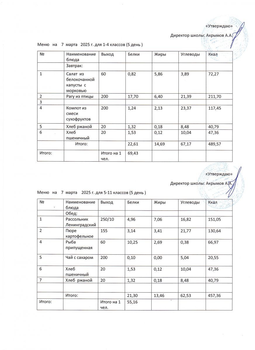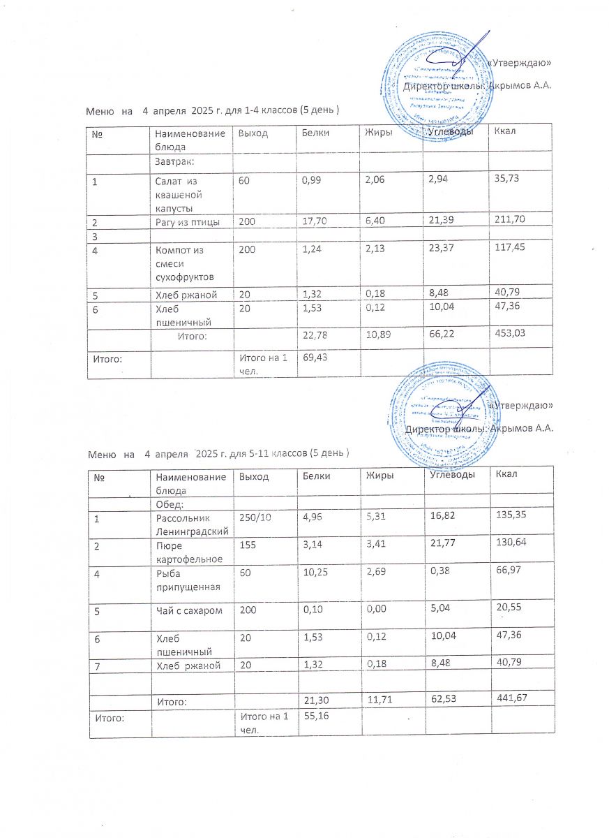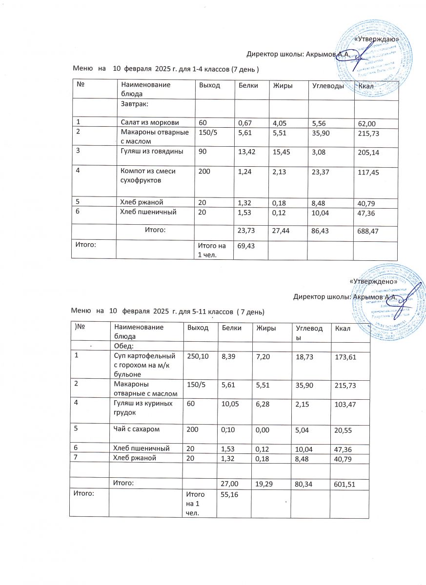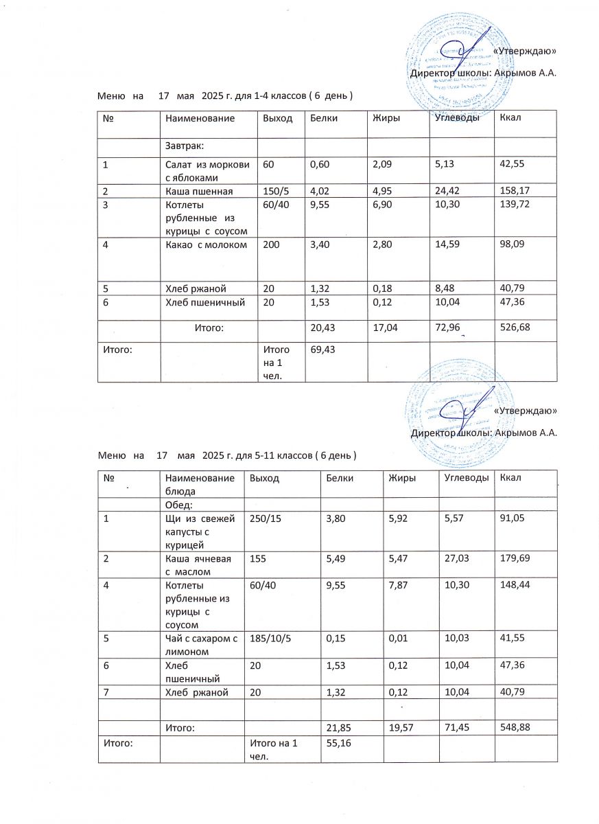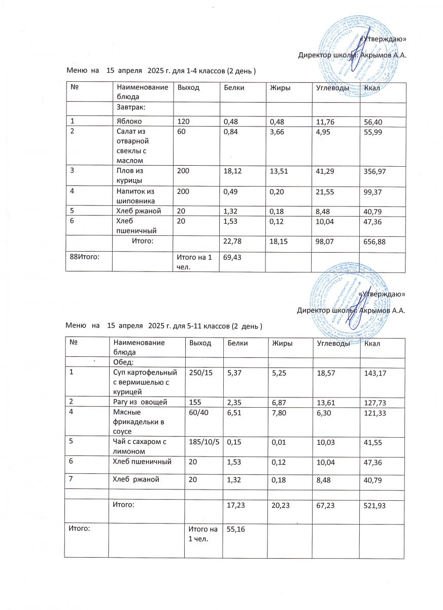 Ежедневное меню учащихся 1-4, 5-11 классов на 2024-2025 уч.год