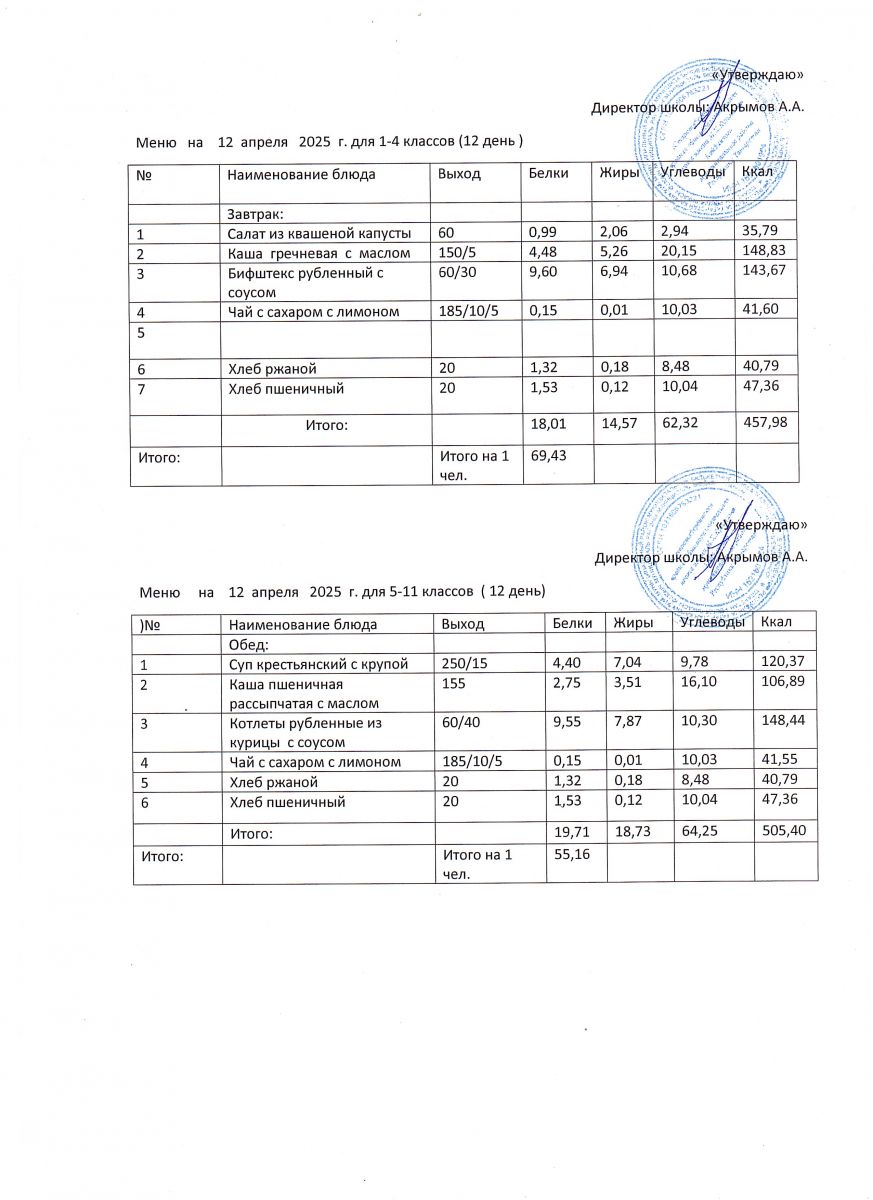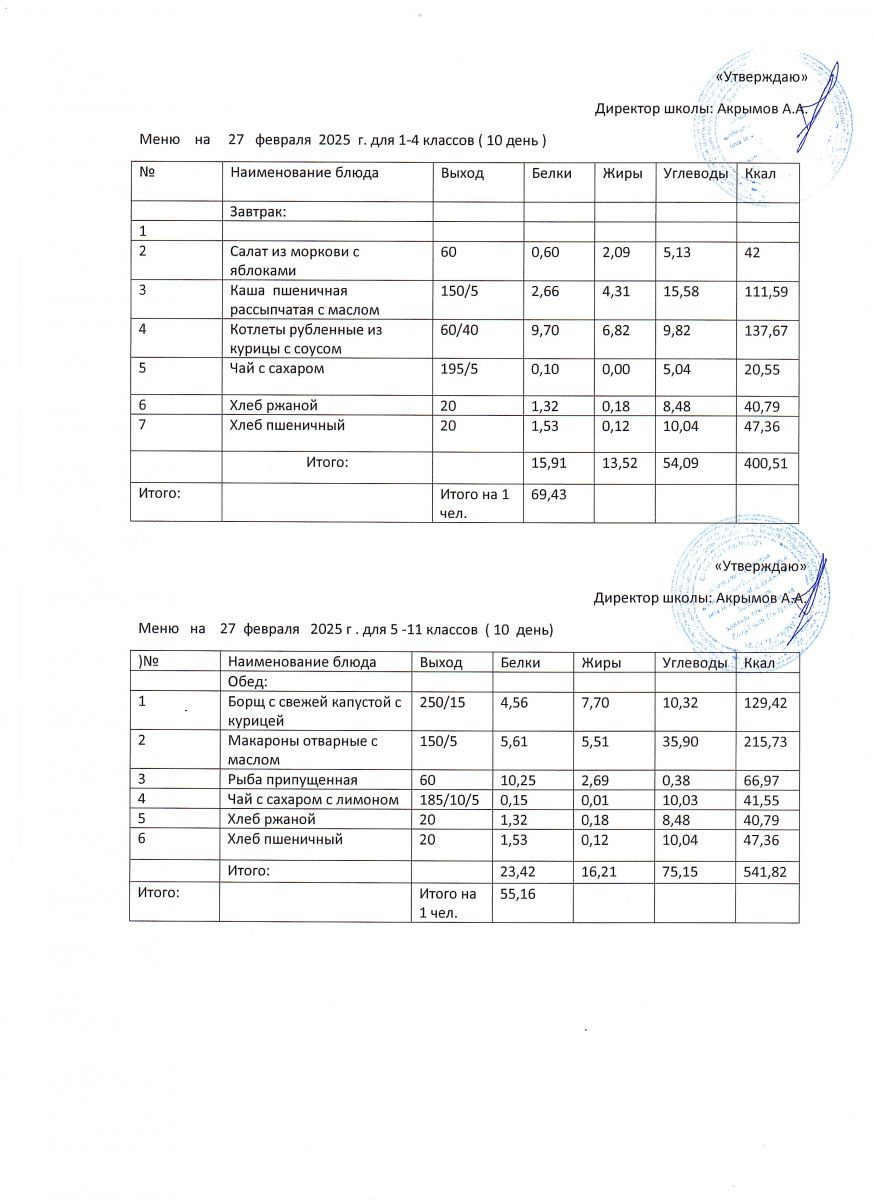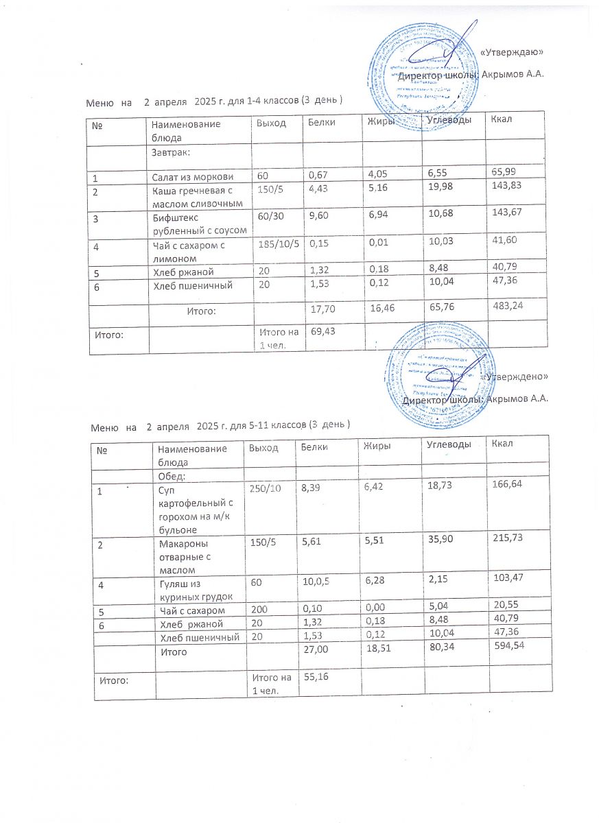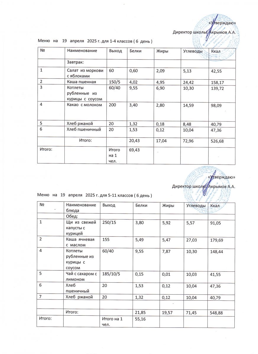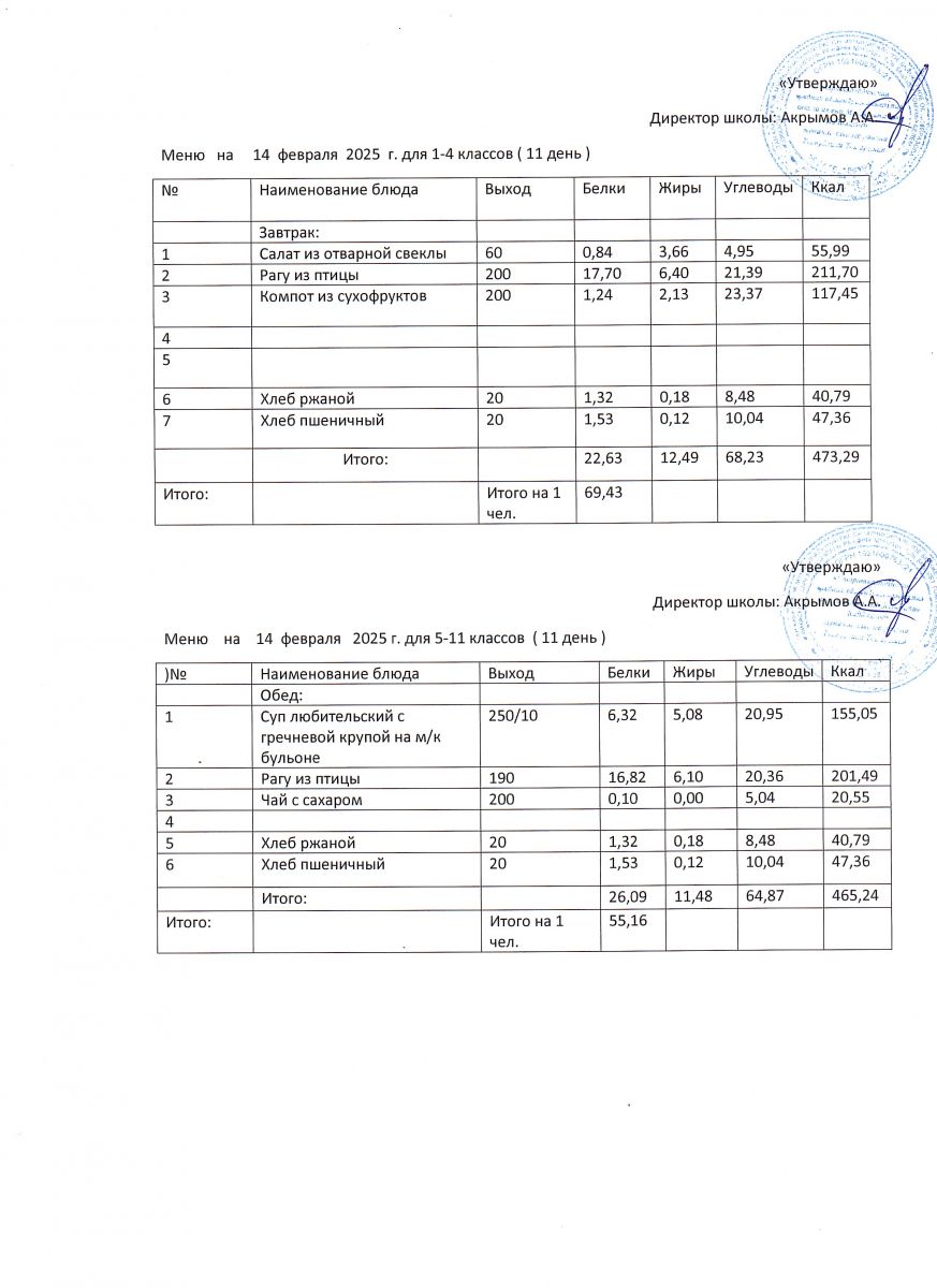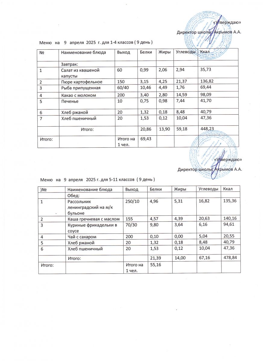 Ежедневное меню учащихся 1-4, 5-11 классов на 2024-2025 уч.год