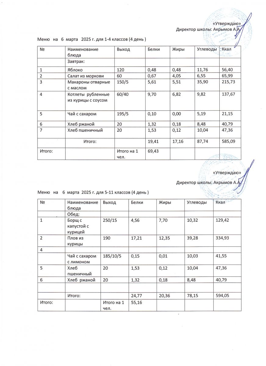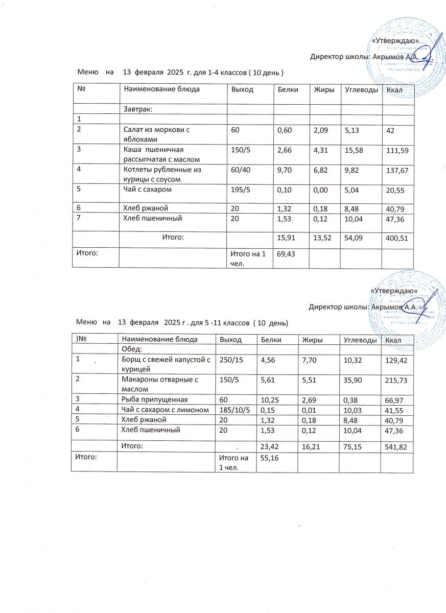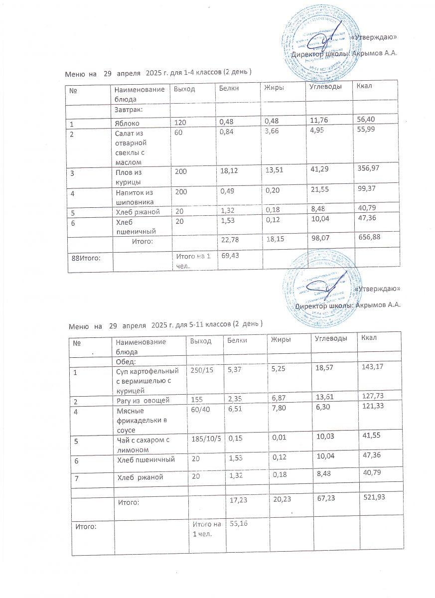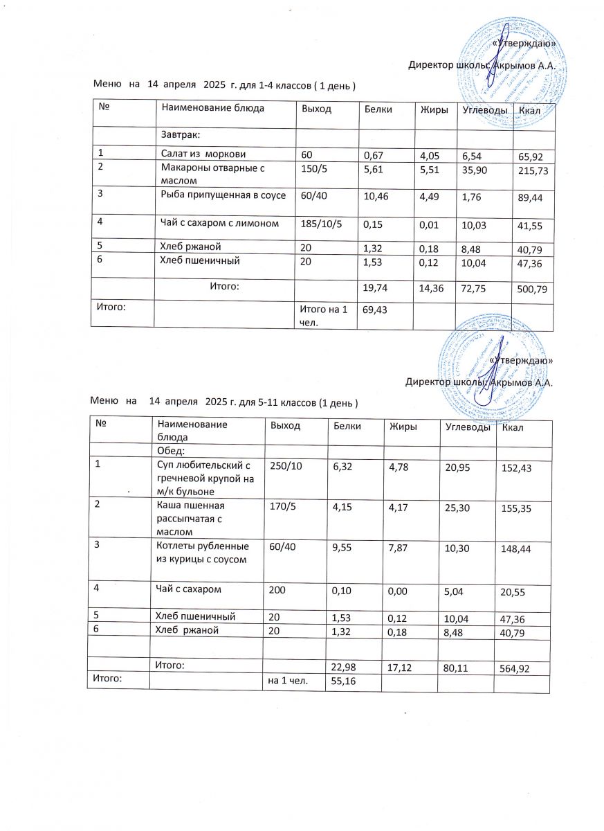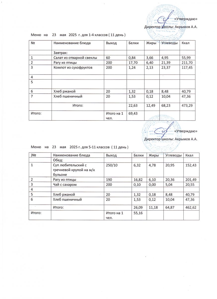 Ежедневное меню учащихся 1-4, 5-11 классов на 2024-2025 уч.год