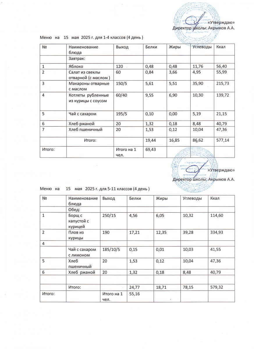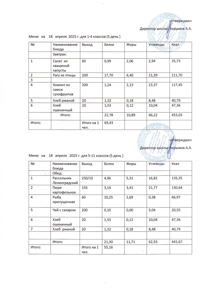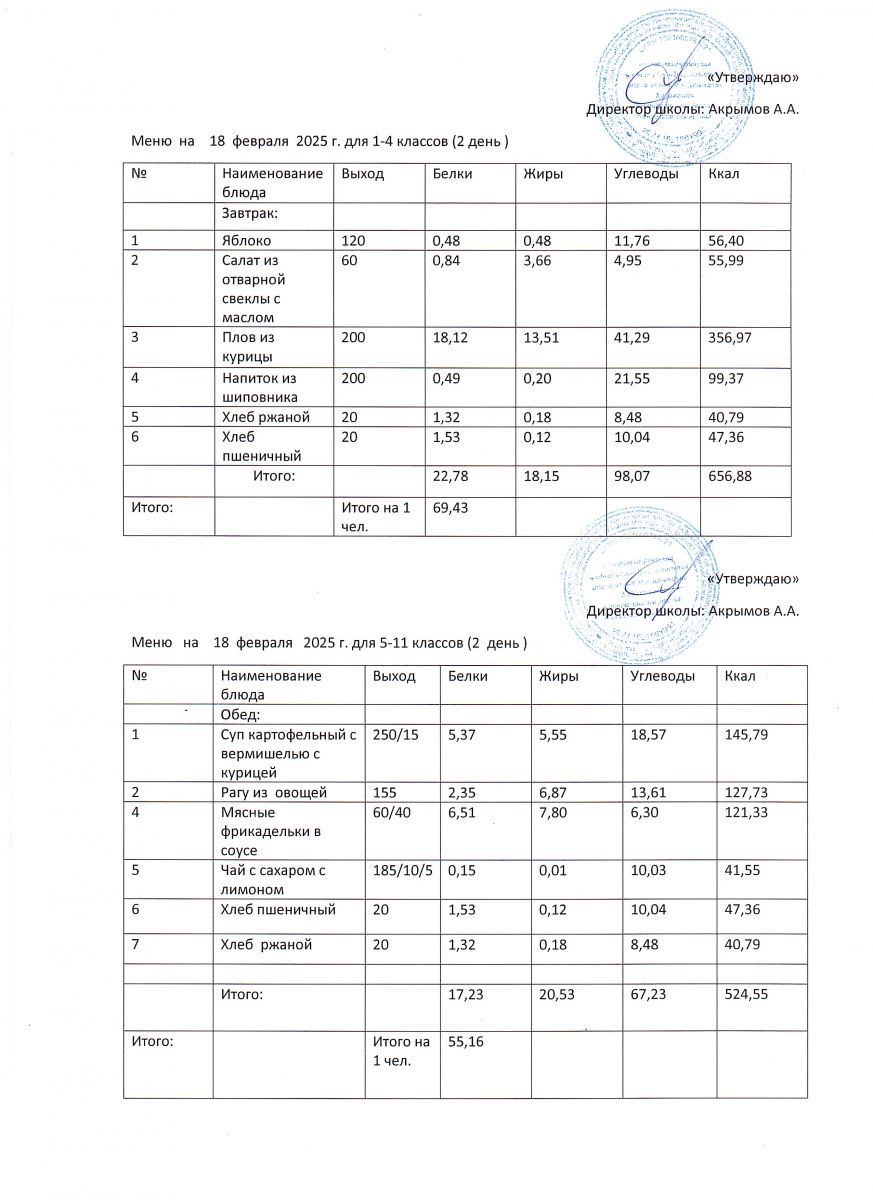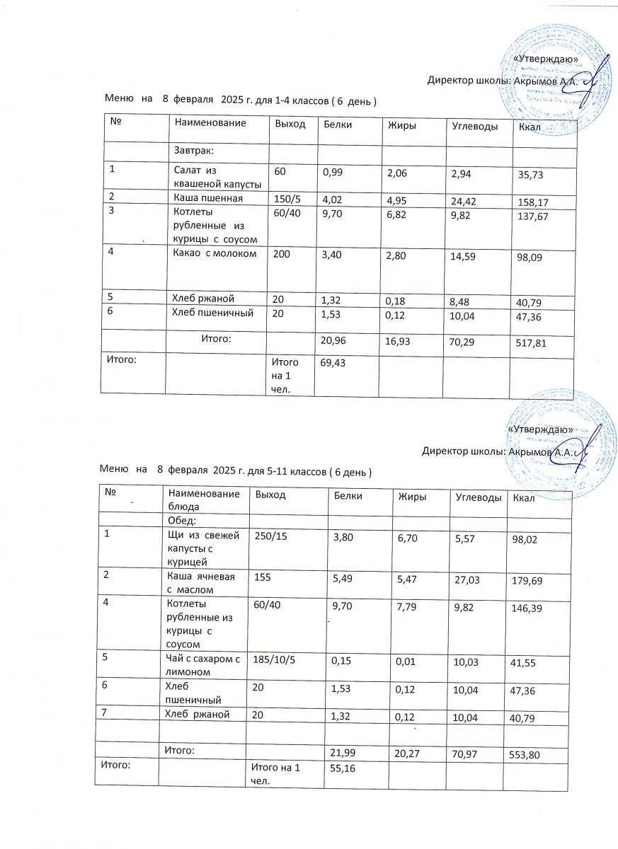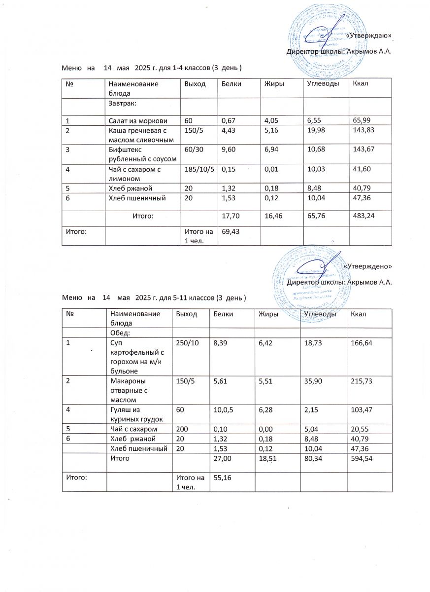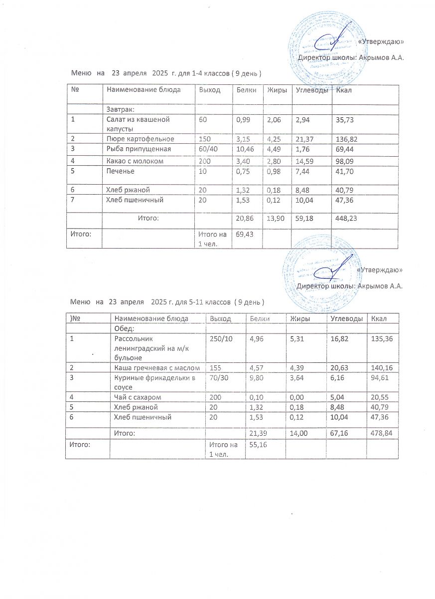 Ежедневное меню учащихся 1-4, 5-11 классов на 2024-2025 уч.год