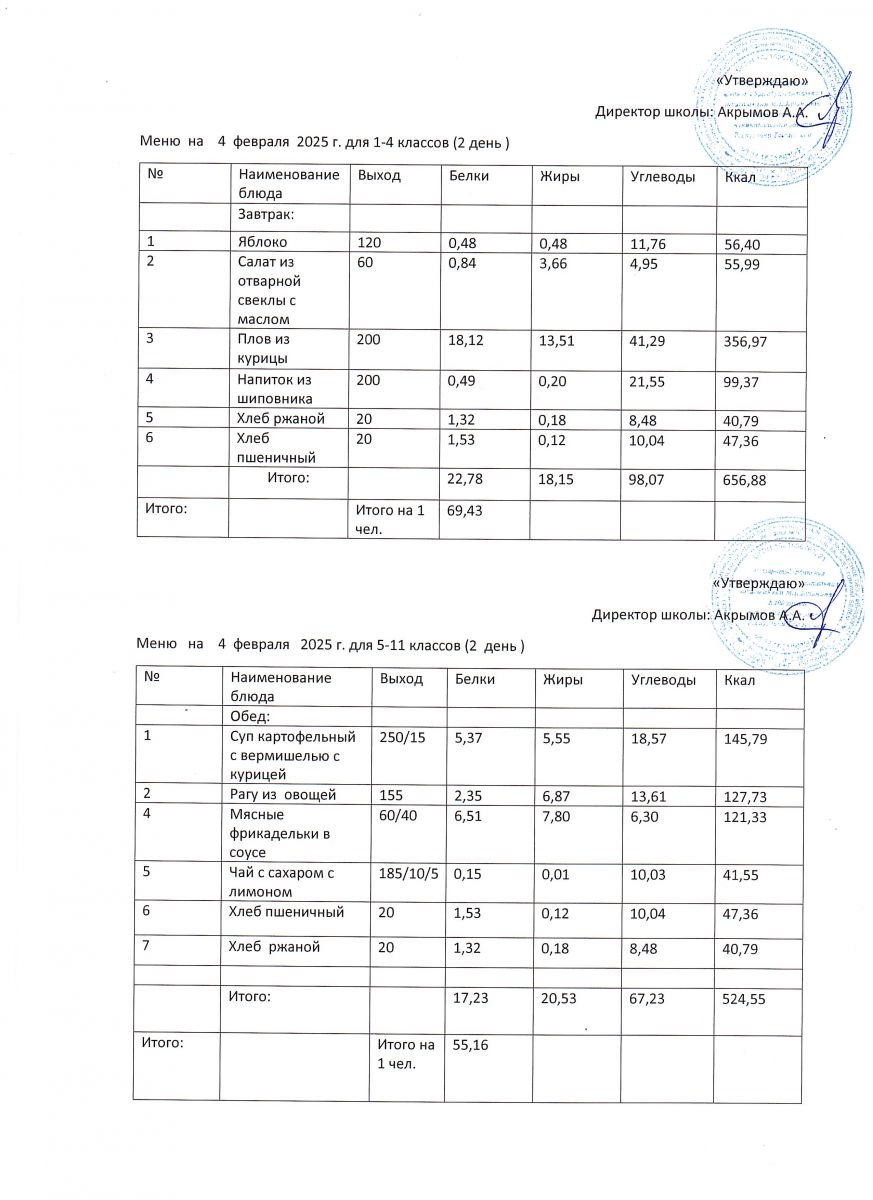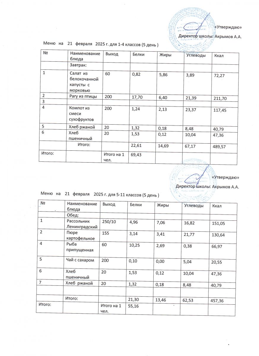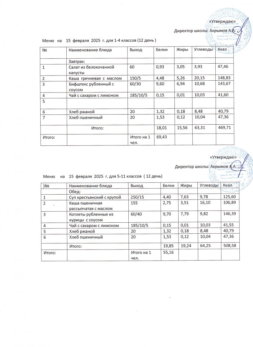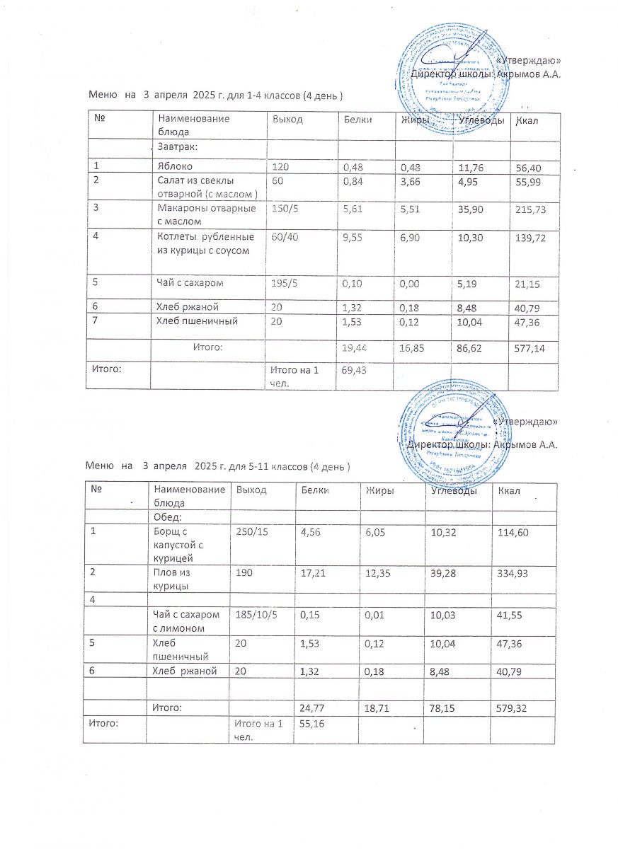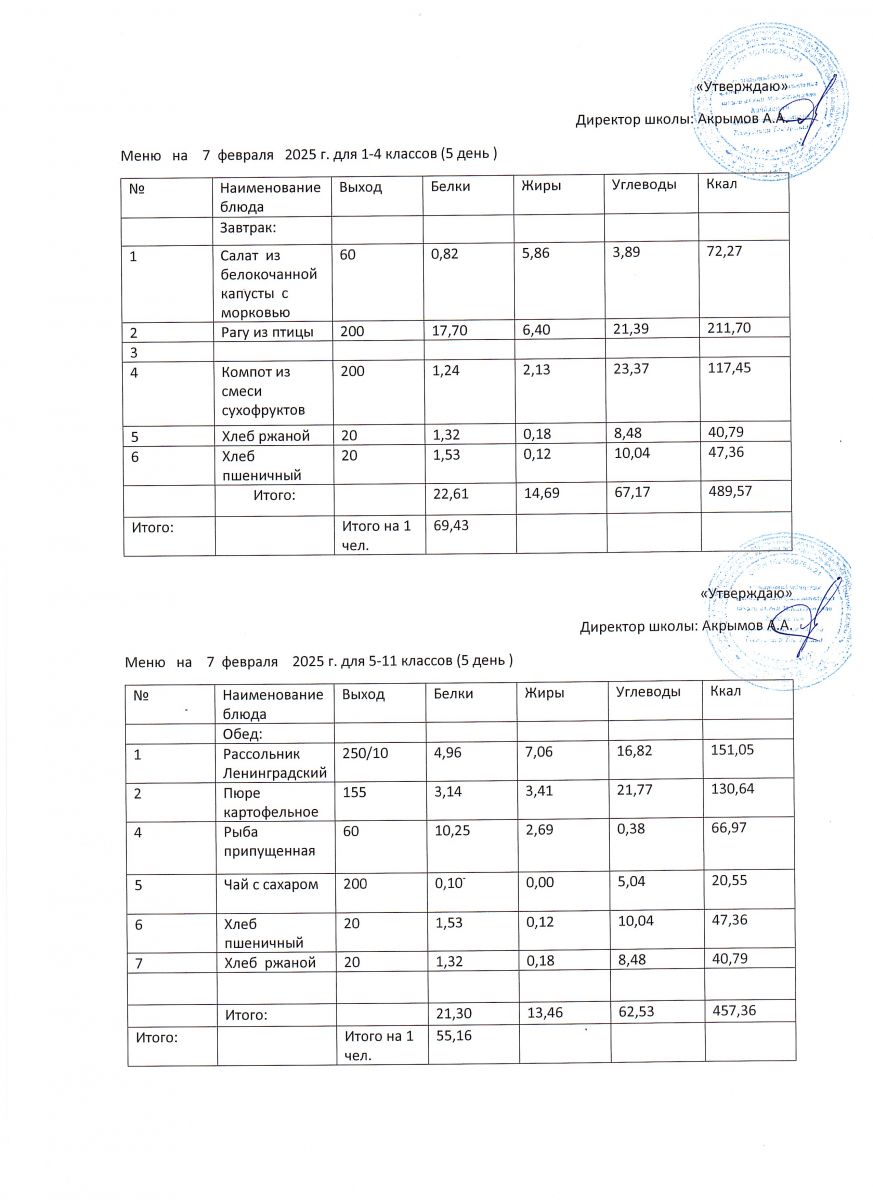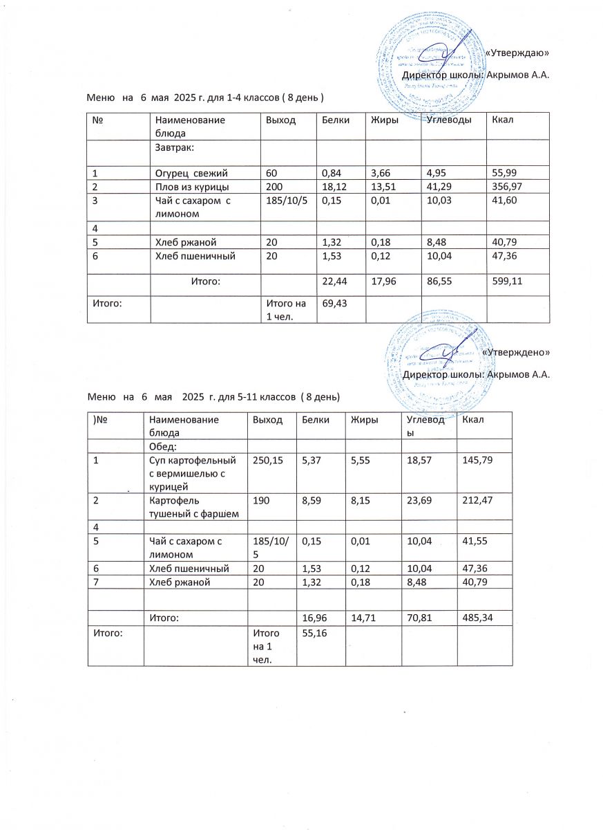 Ежедневное меню учащихся 1-4, 5-11 классов на 2024-2025 уч.год