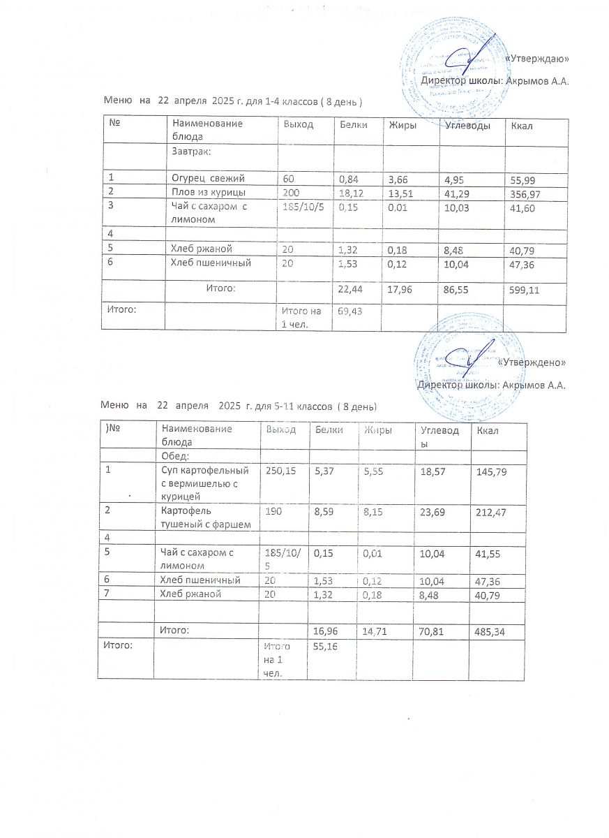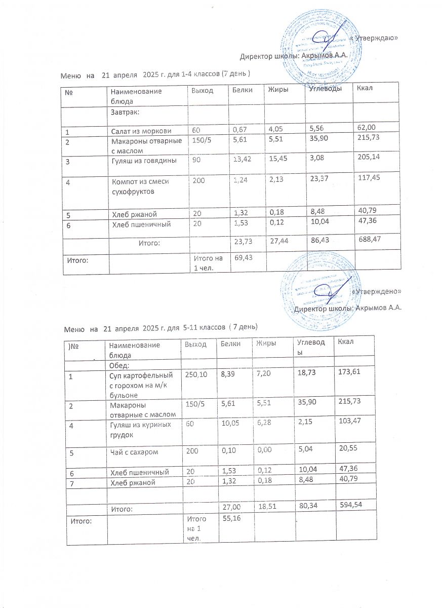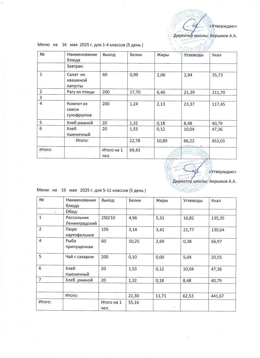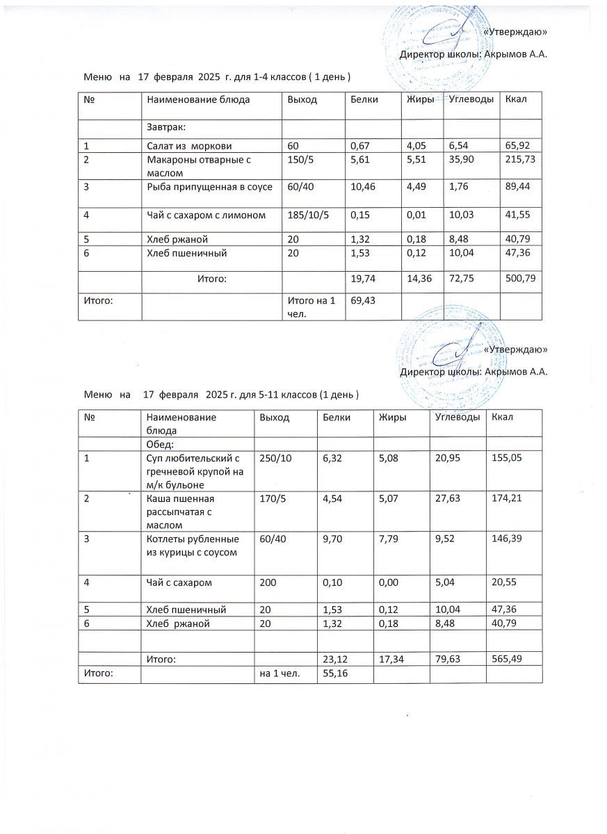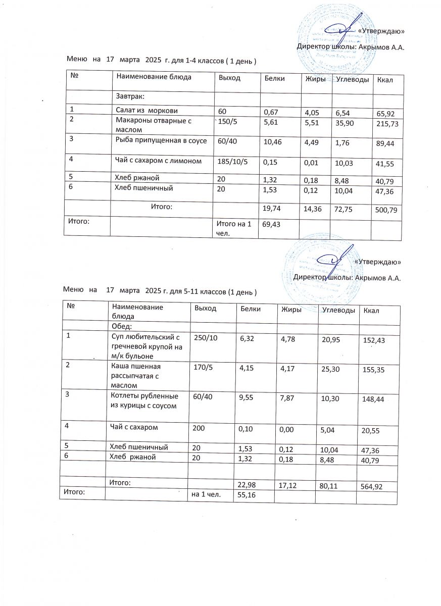 Ежедневное меню учащихся 1-4, 5-11 классов на 2024-2025 уч.год