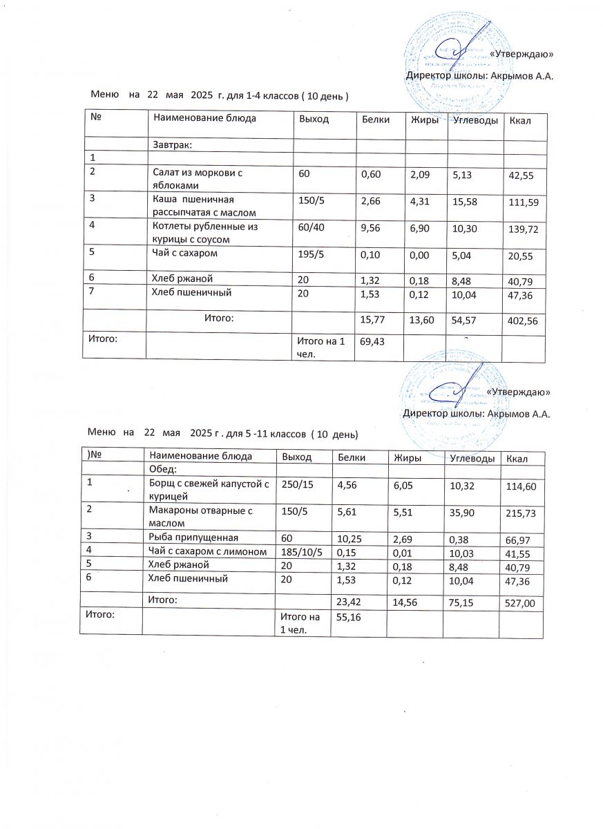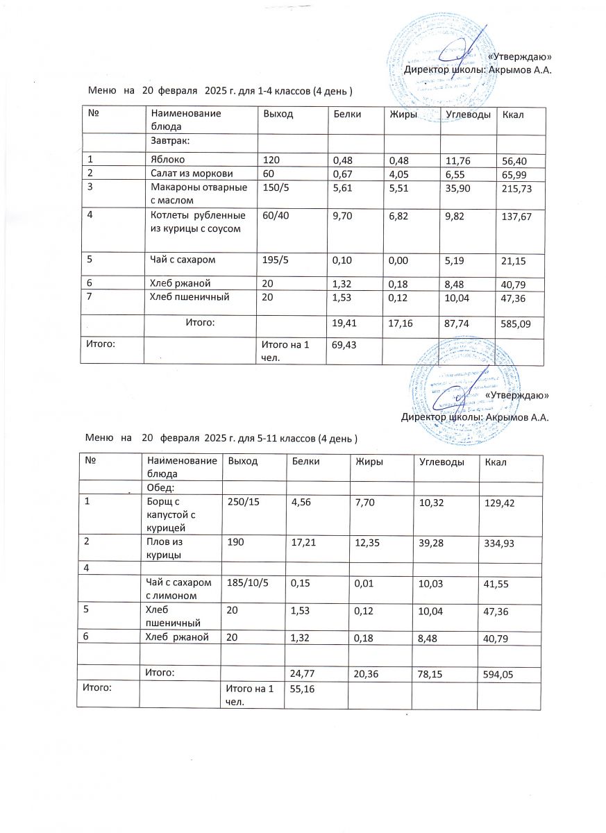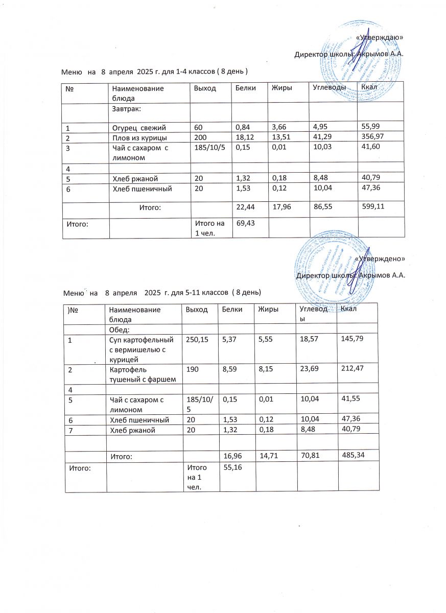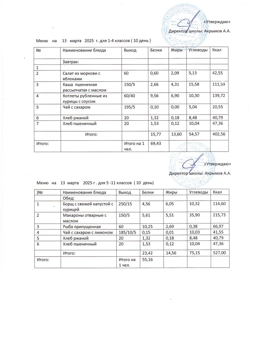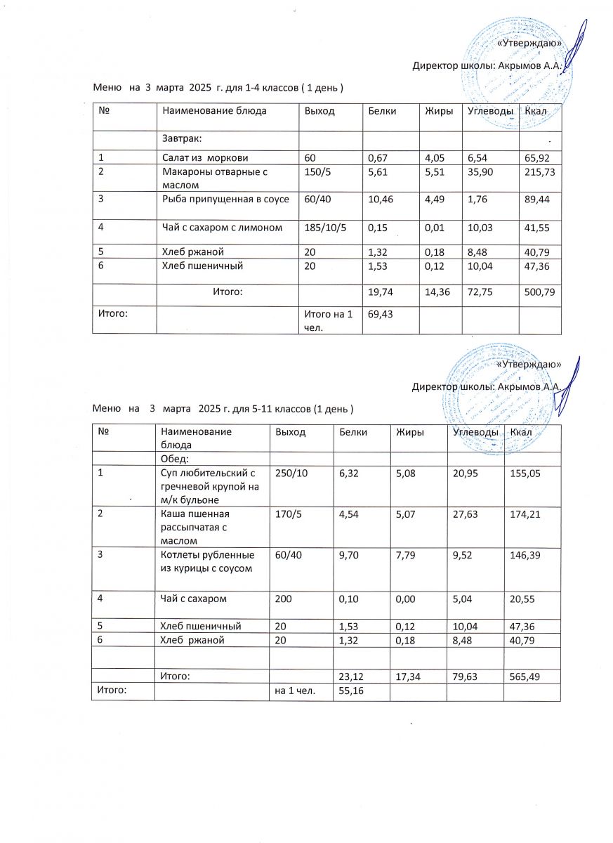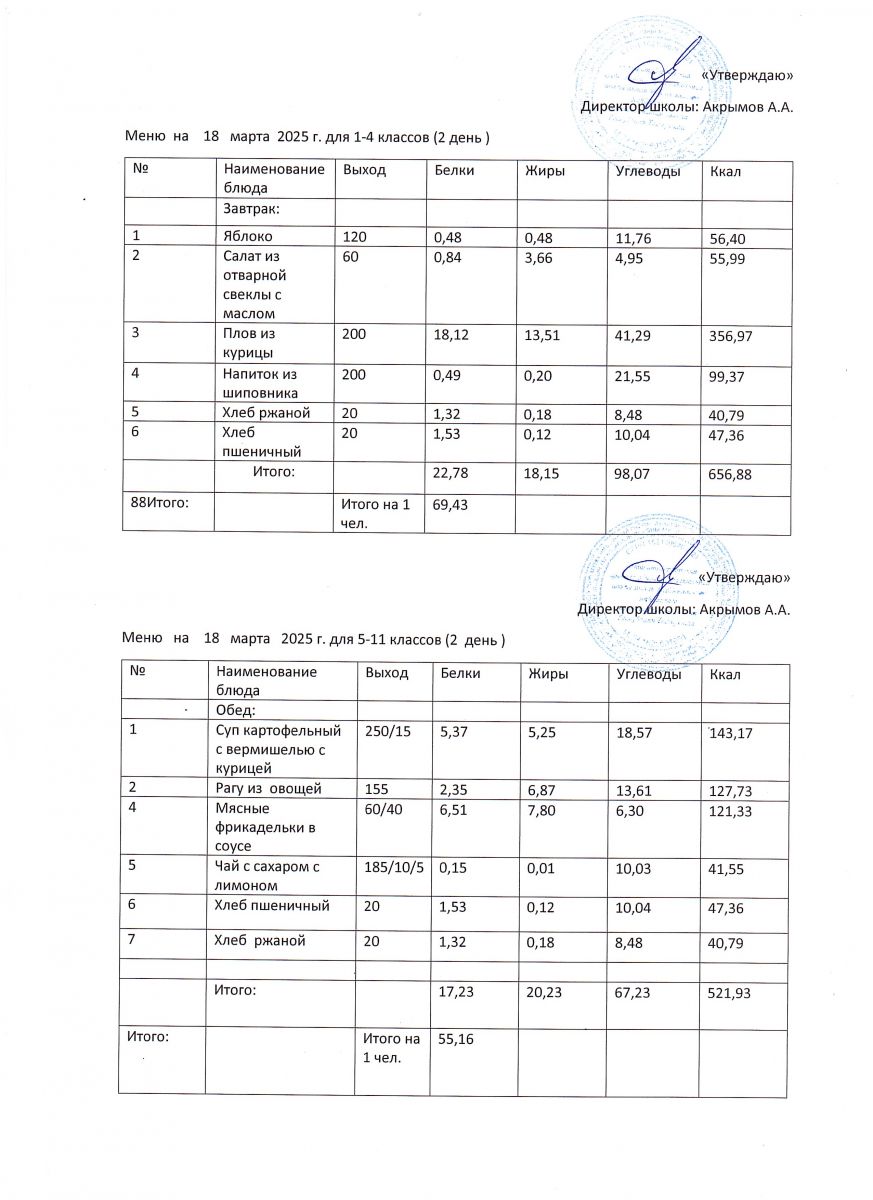 Ежедневное меню учащихся 1-4, 5-11 классов на 2024-2025 уч.год